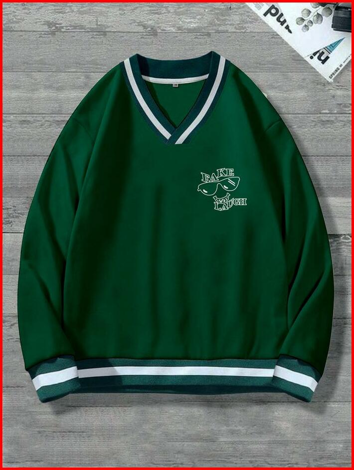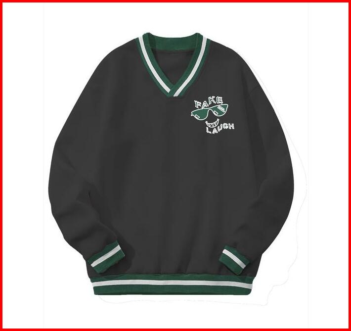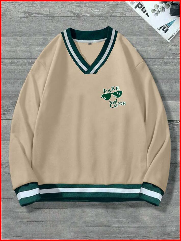 Sweater Strip V Neck Fake Laugh Sweatshirt Vneck M-xxl Unisex Fleece Crewneck