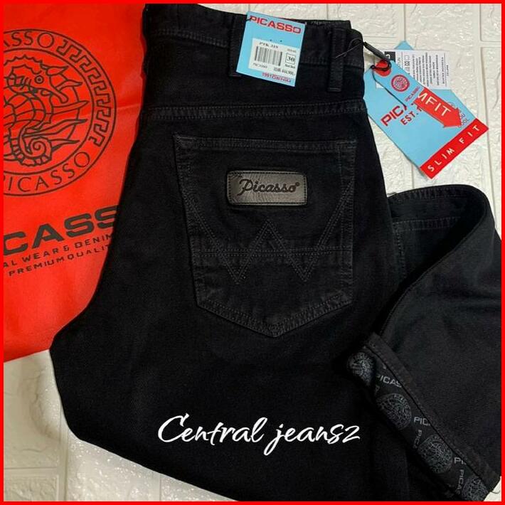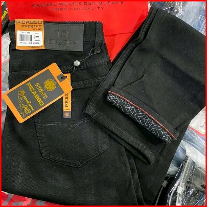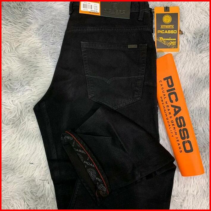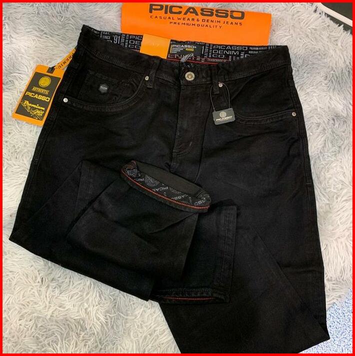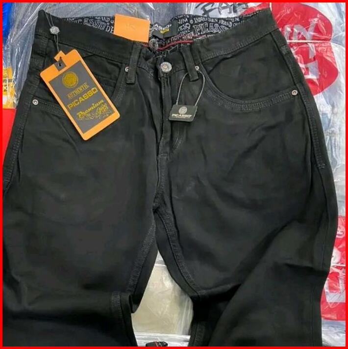 Celana Hitam Picasso Softjean Pria Model Korea Bahan Denim Berkualitas