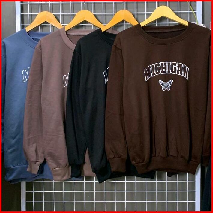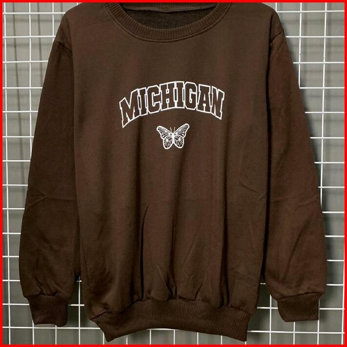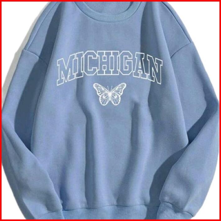 Michigan Sweater Crewneck Blouse Top Wanita Pria