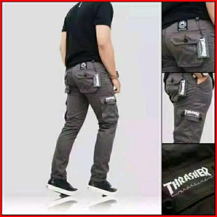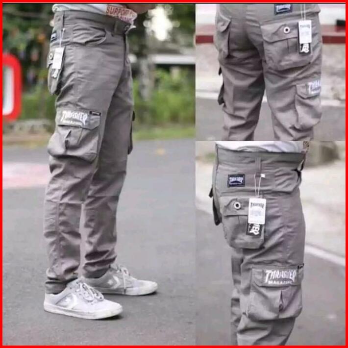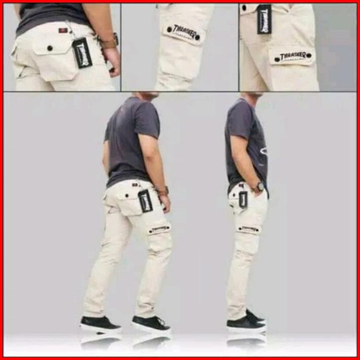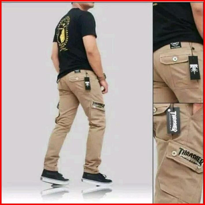 Celana Cargo Panjang Pria Army Cream Mocca Hitam Bahan American Drill Katun