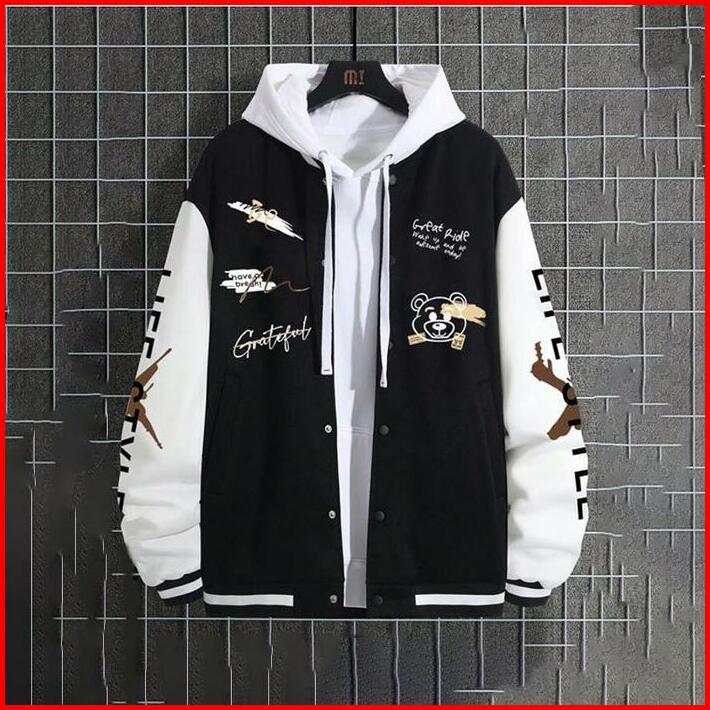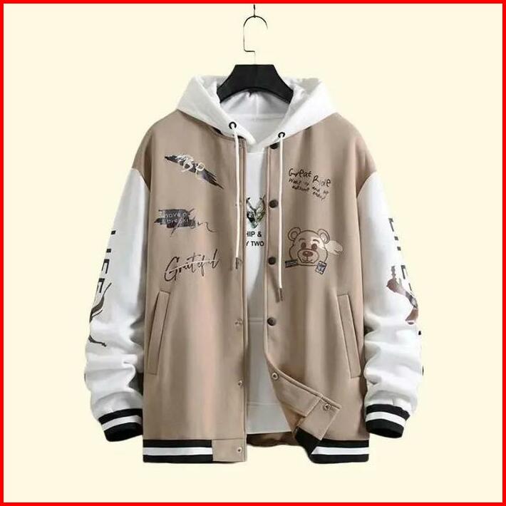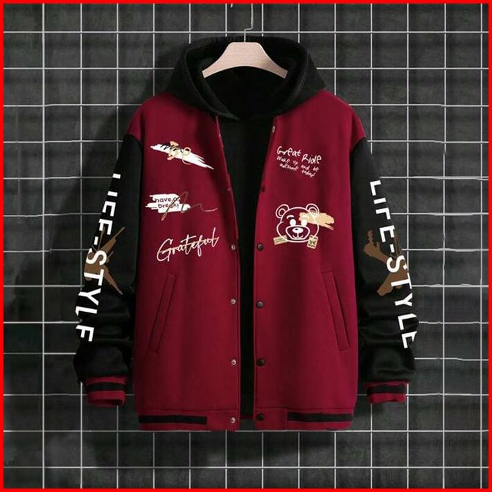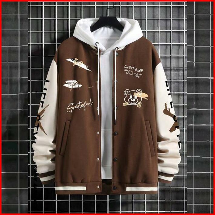 Jaket Varsity Baseball Hoodie Oversize Pria Wanita Style Tyle Bear Life Style M L Xl Sweater Unisex Casual Zipper Tervir