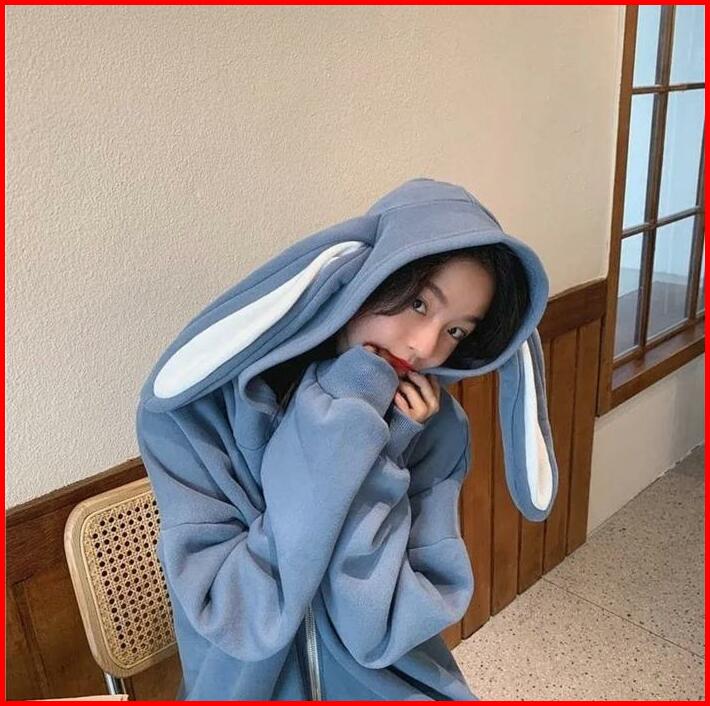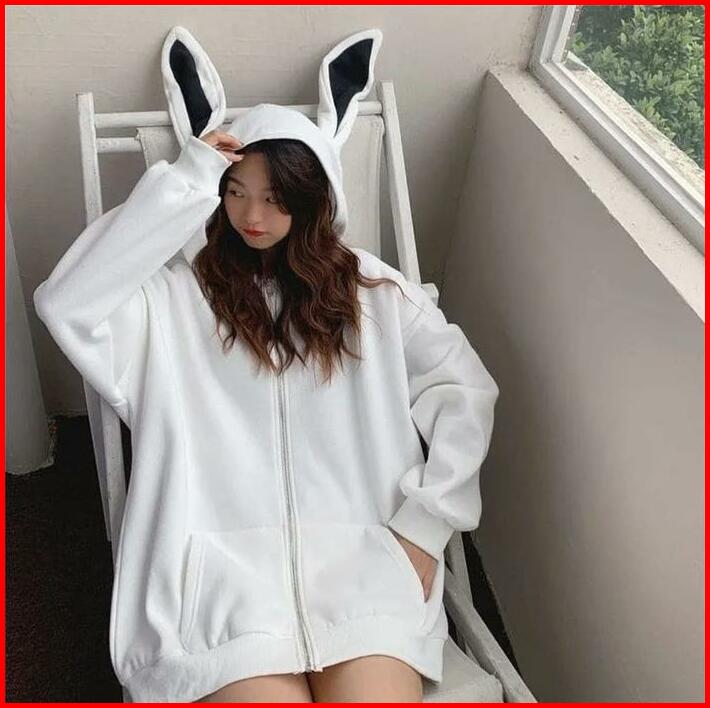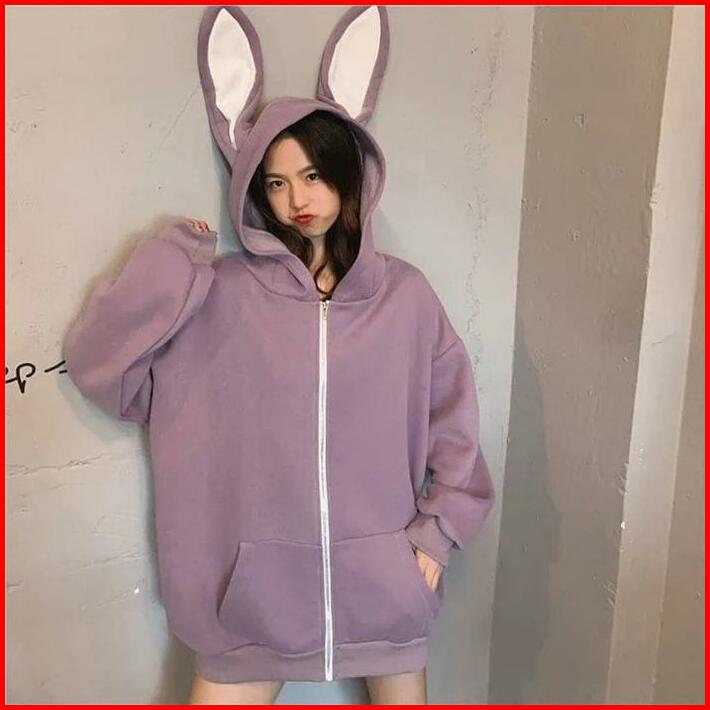 Jaket Zipper Hoodie Xxl Rabbit Sweater Oversize Wanita Korean Style