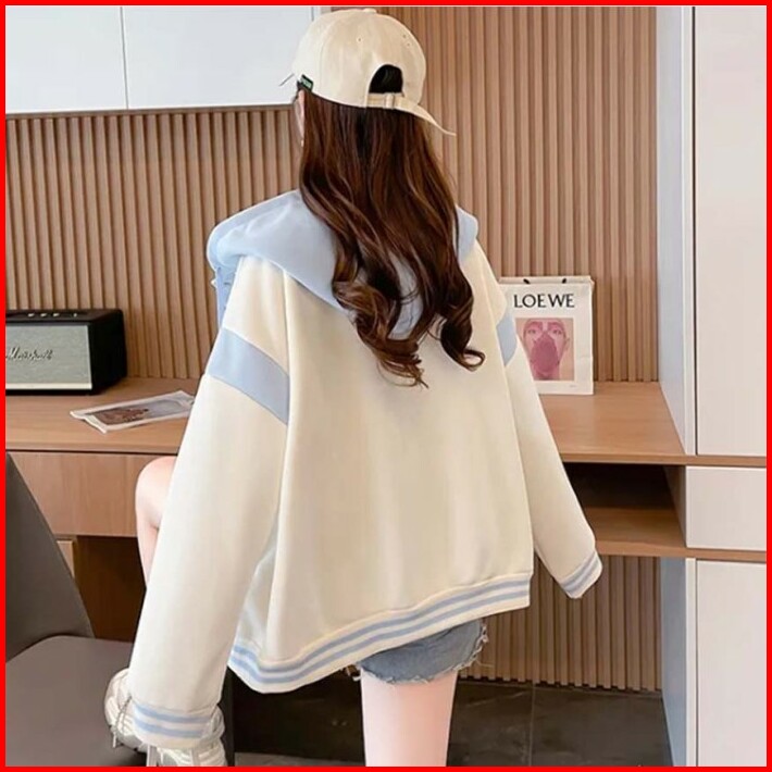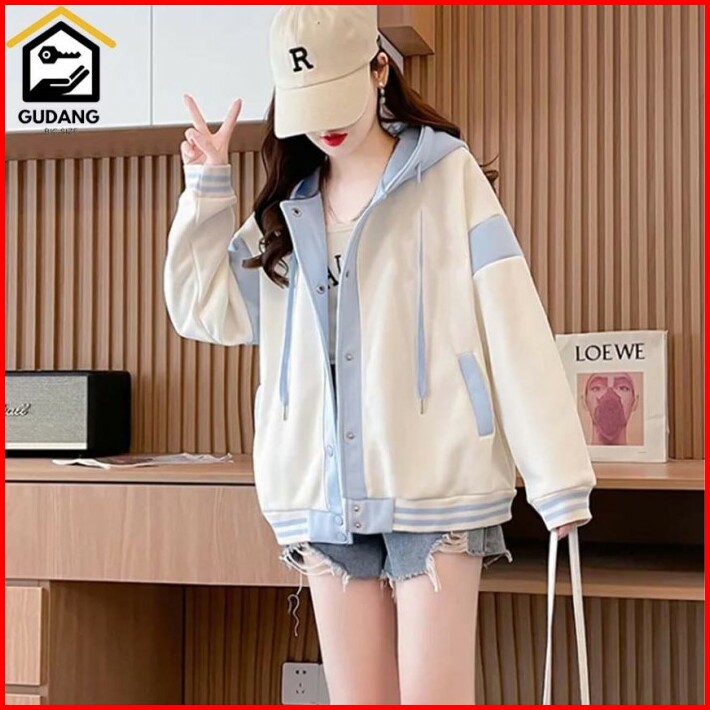 Jaket Zipper Oversize Pria Wanita Putih Baby Blue Basic Hoodie Jumbo