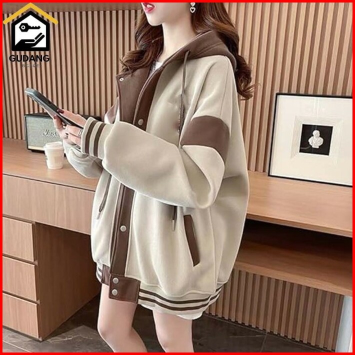Jaket Zipper Oversize Pria Wanita Beige Caramel Basic Hoodie Jumbo