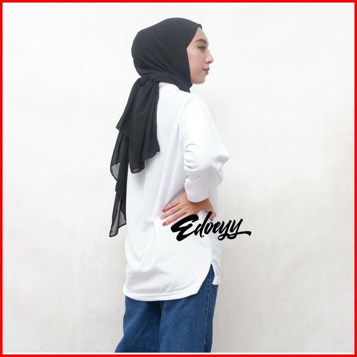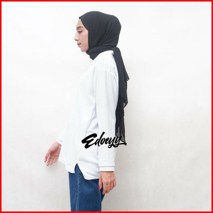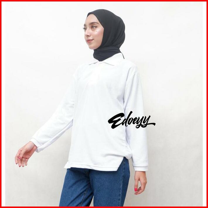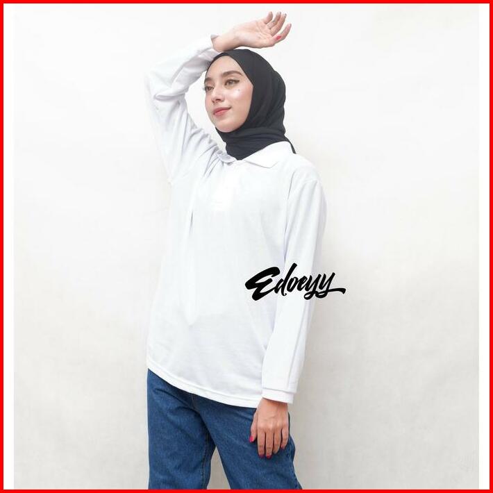 Kaos Polo Shirt Wanita Lengan Panjang Putih