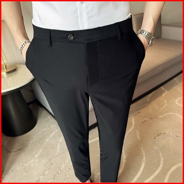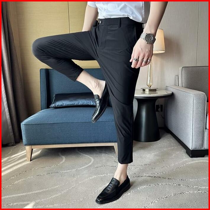 Zafos.id Celana Pria Ankle Pants Panjang Polos Slimfit Bahan Elastis Hitam Polos