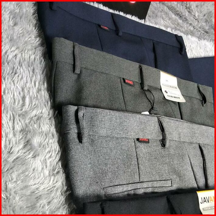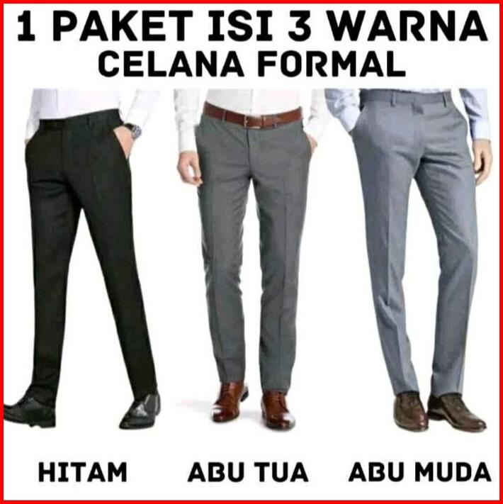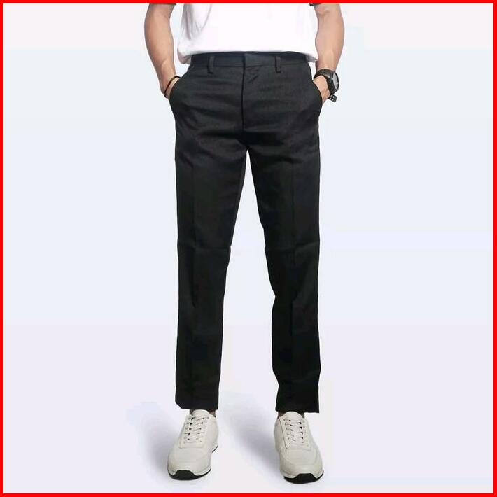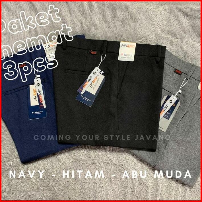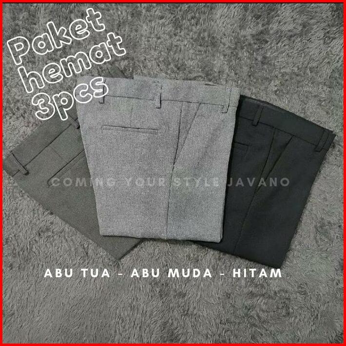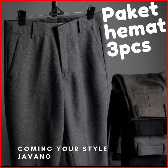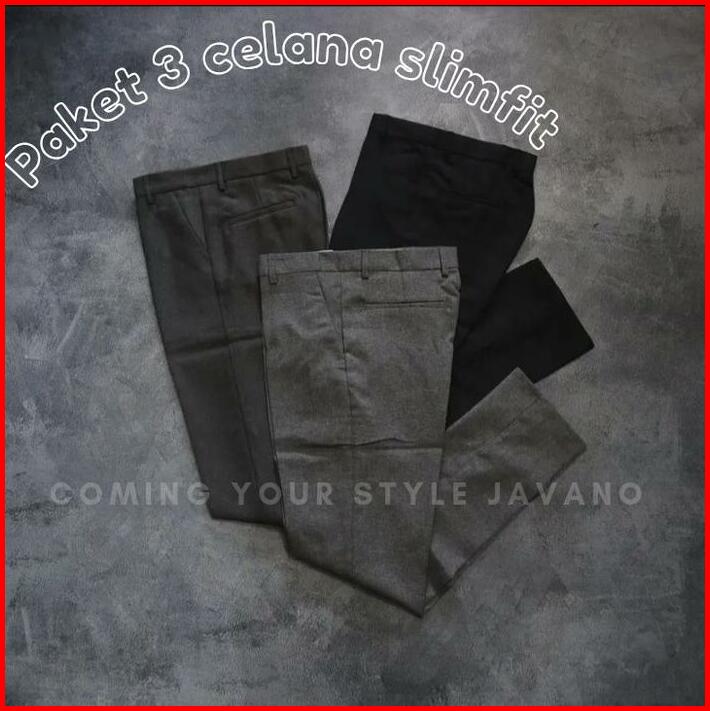 Paket 3 Celana Slimfit Bahan Woll Premium Panjang Formal Kerja Pria Tebal Hitam