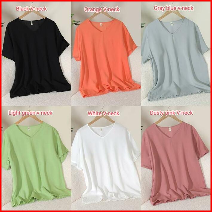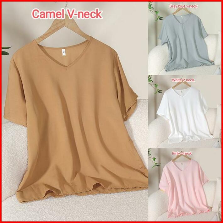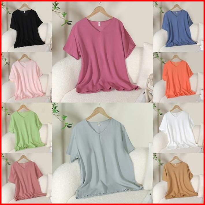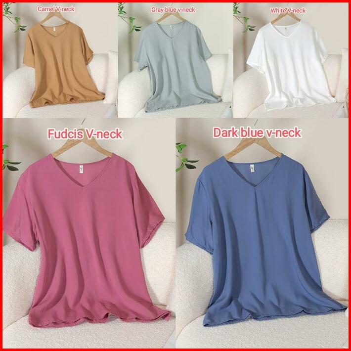 Baju Wanita Baju Polos V-neck Bahan Rayon Viscose Adem Longgar
