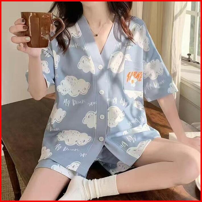 Bbi Piyama Wanita Dewasa Motif Karakter Animasi Lucu Set Baju Tidur Perempuan Lengan Celana Pendek Full Kancing Bahan Ka