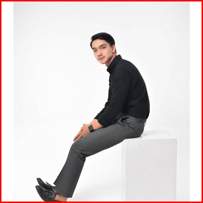 Celana Formal Kantor Kerja Bahan Pria Slimfit Hitam Panjang