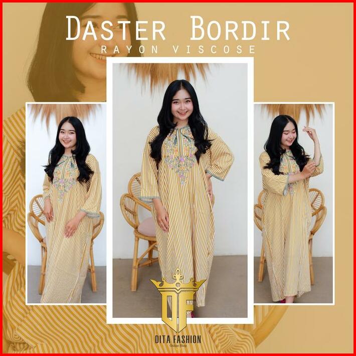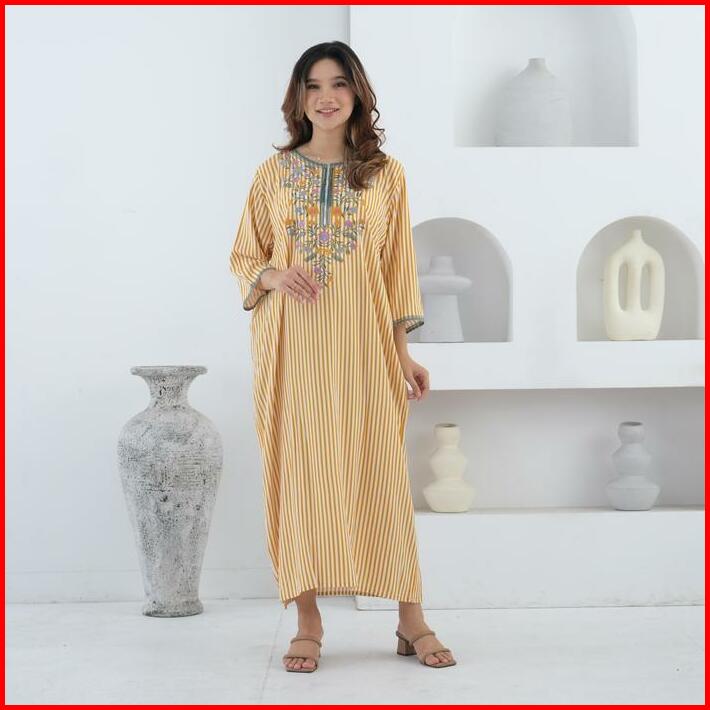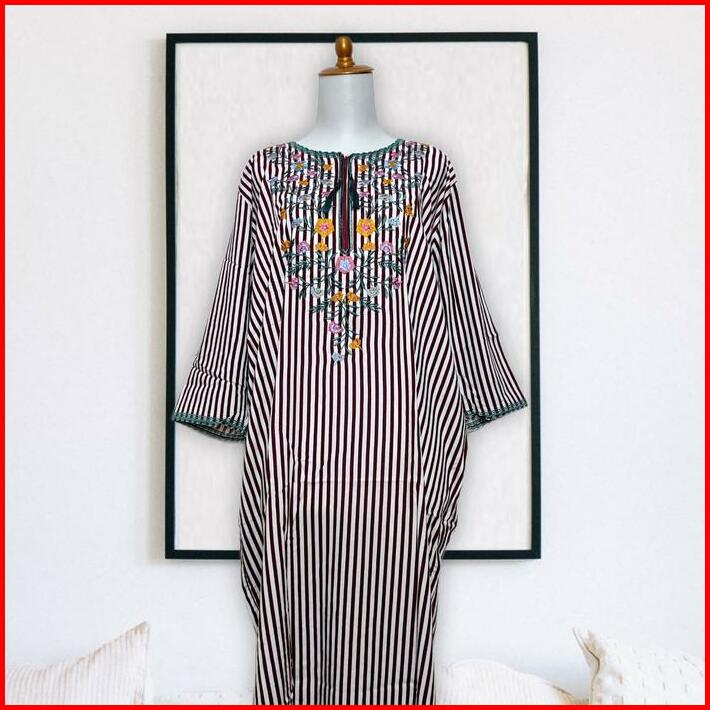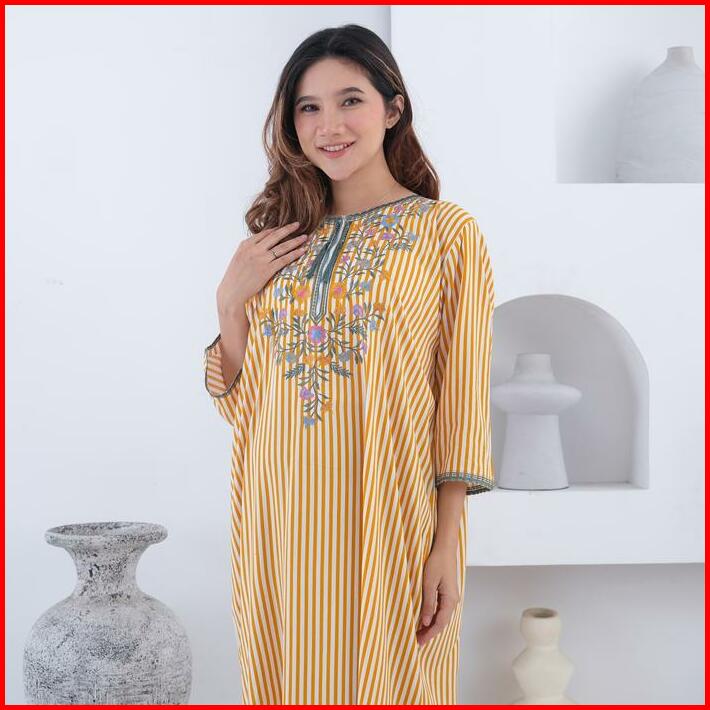 Daster Bordir Motif Busui Lengan Panjang 7 8 Tassel Katun Rayon Viscose Lembut Nyaman Tidur Bumil