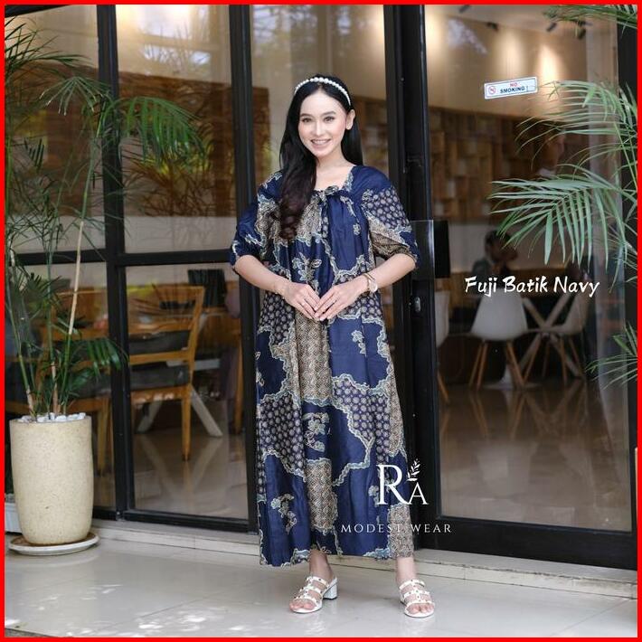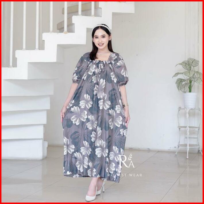 Daster Long Wanita Fuji Tali Dewasa Lengan Balon Motif Bunga Besar Bahan Katun Rayon Bali Ld 120 Panjang 130 Bumil Karet
