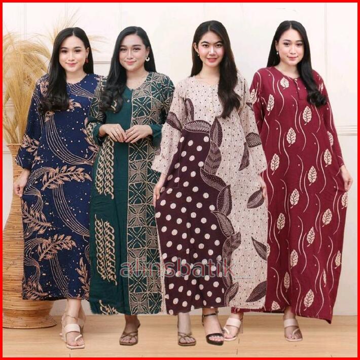 Paket 3 Longdress Daster Lengan Panjang Kancing Depan Katun Bunga Musim Dingin