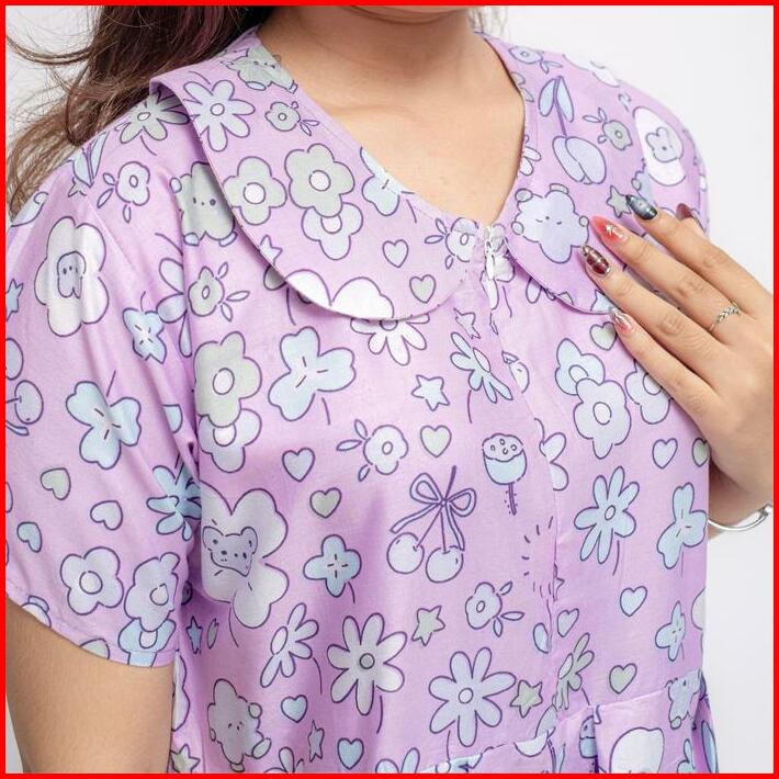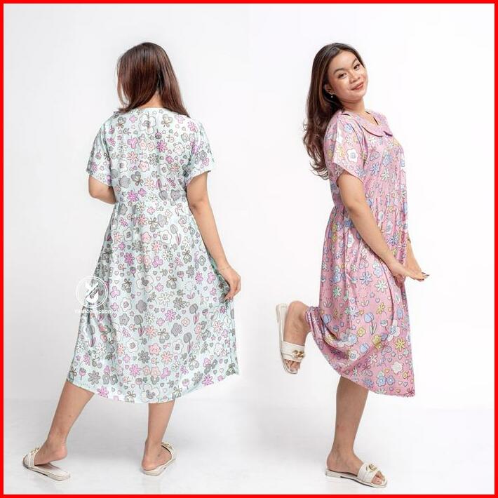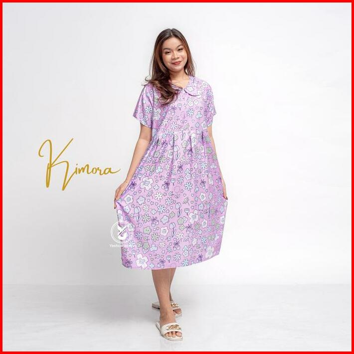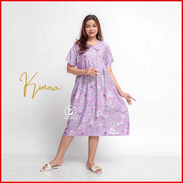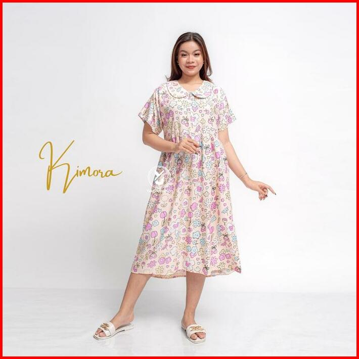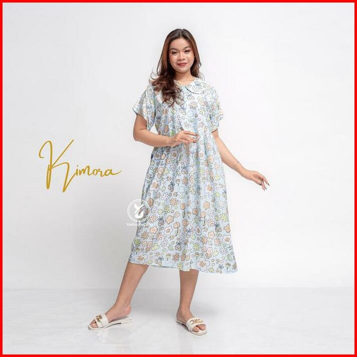 Daster Kimora Korean Dress Chibi Kerah Kupu Panjang Selutut Rayon Busui Santai Tidur Lembut Nyaman Yashcollection