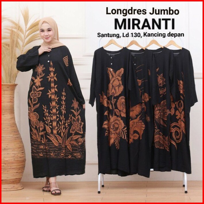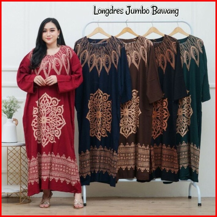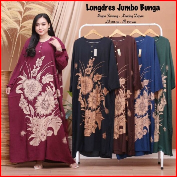Daster Lengan Panjang Jumbo Rayon Batik Kancing Depan Busui Pekalongan
