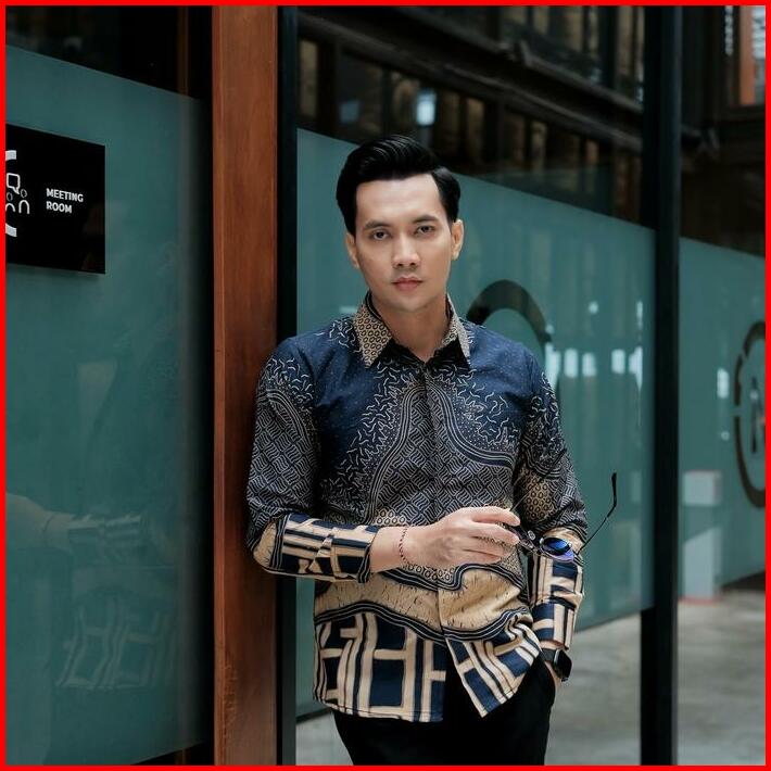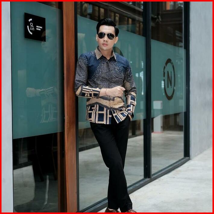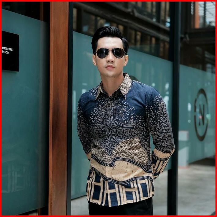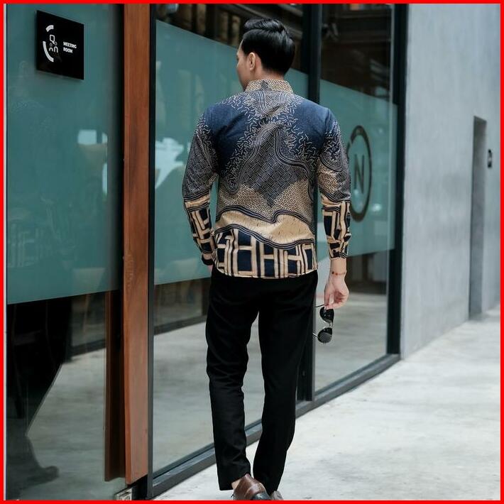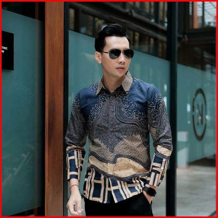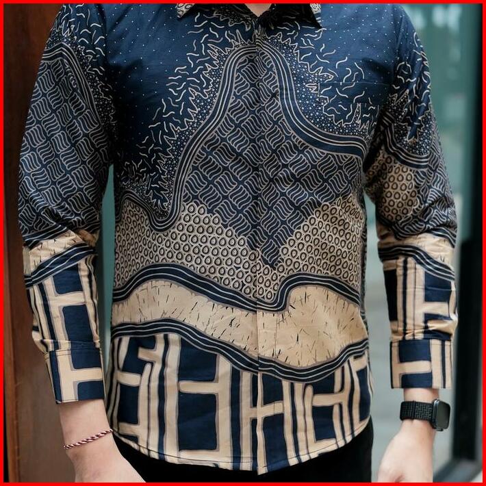Bara Navy Kemeja Batik Pria Lengan Panjang Furing Full Katun Slimfit Lembut Kain Motif Biru Nyaman Tebal