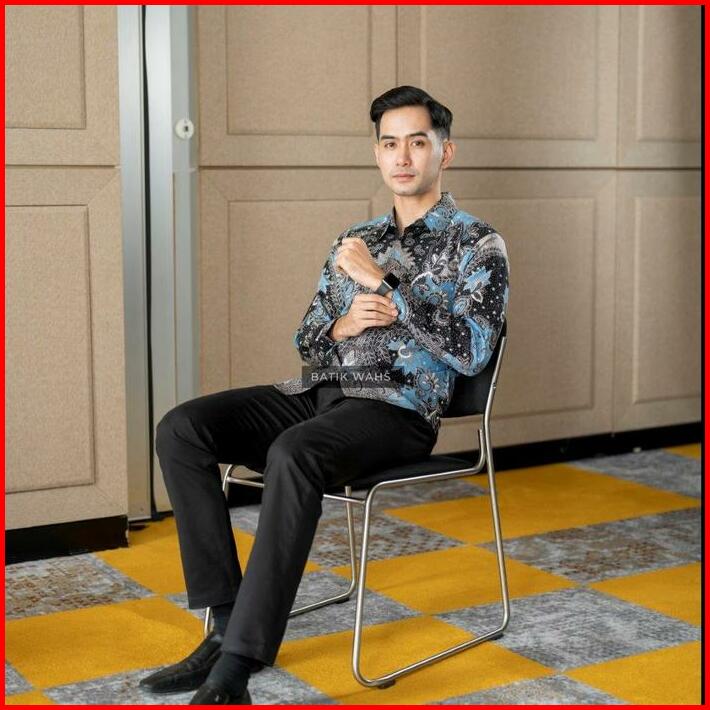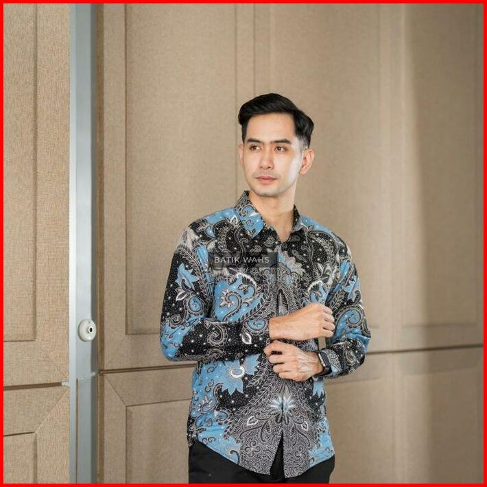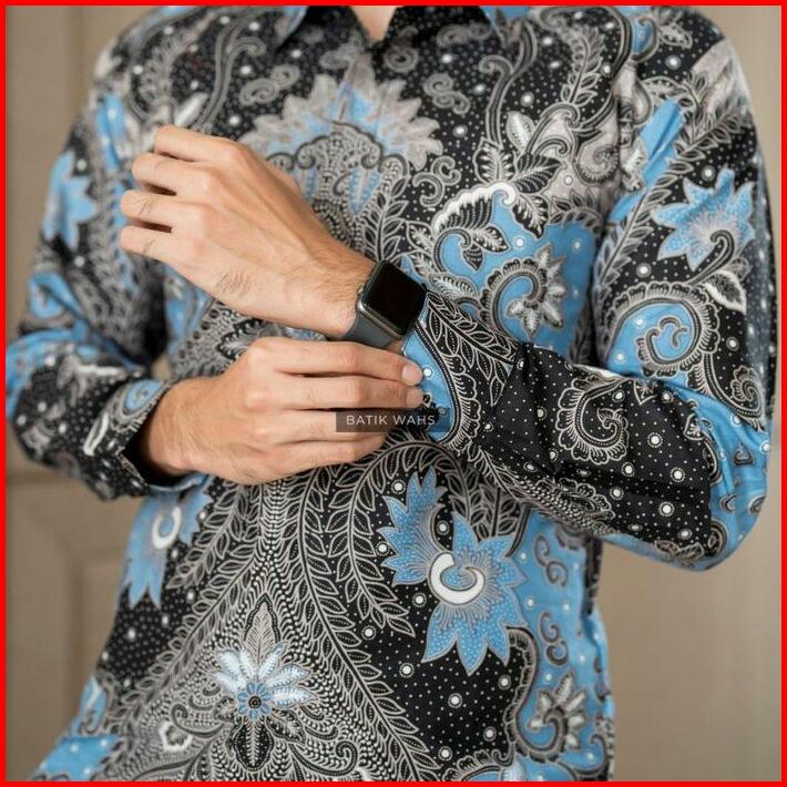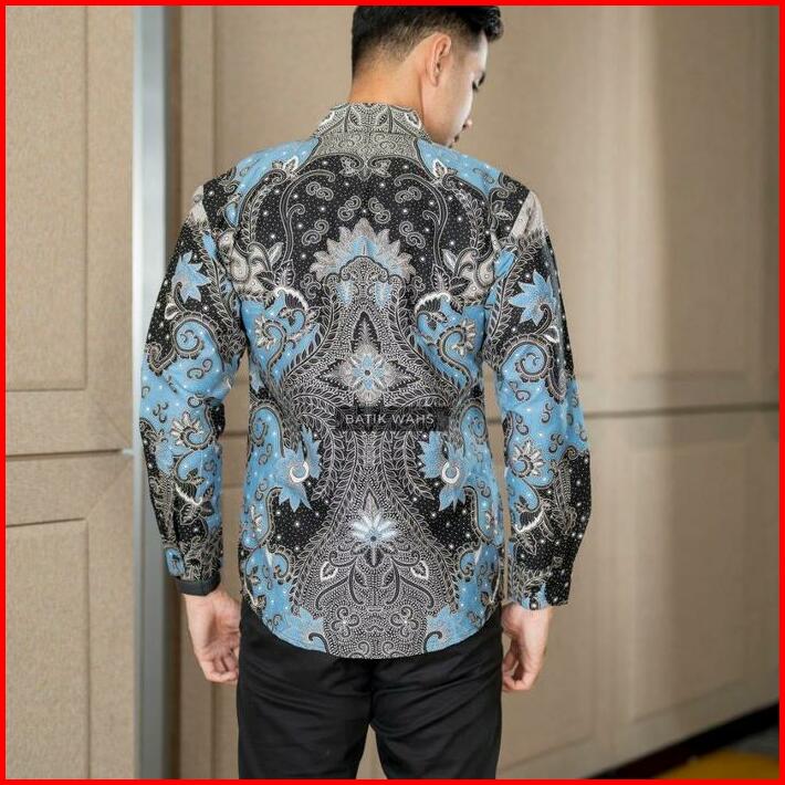 Satya Kemeja Batik Pria Original Solo Lengan Panjang Terbaru Motif Terlaris Lapis Furing Katun Prima Biru Muda Slimfit
