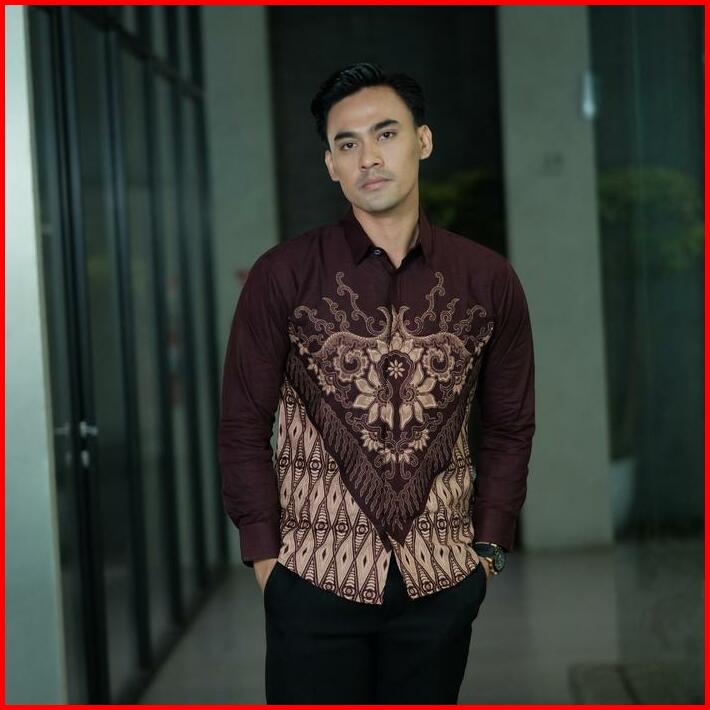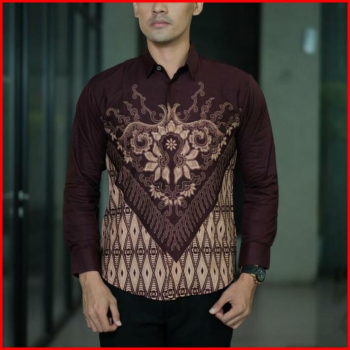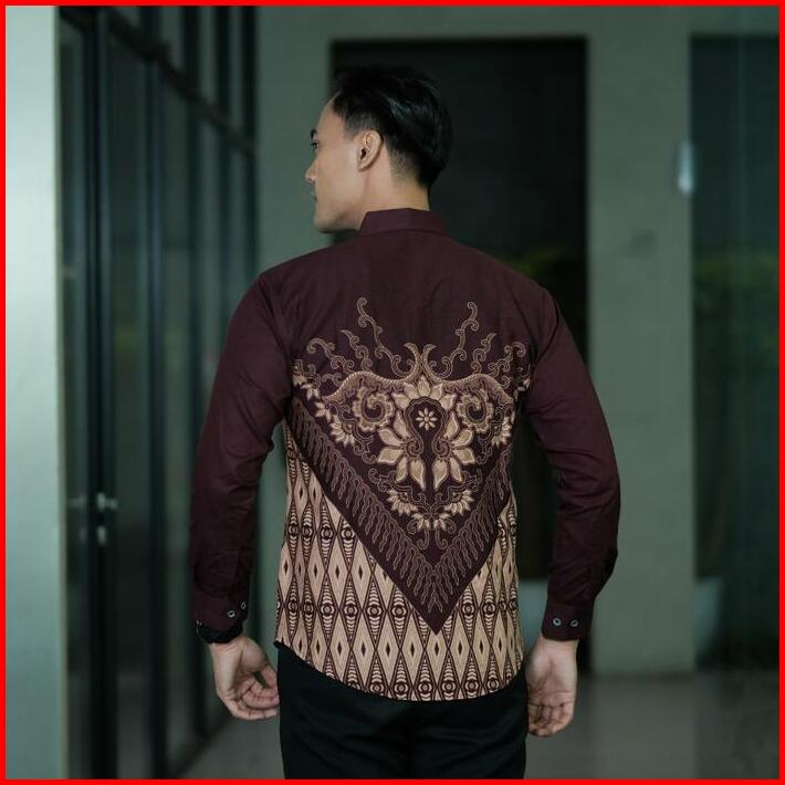 Batik Ningratan Motif Maheswara Burgundy Kemeja Batik Pria Premium Lengan Panjang Slimfit Lapis Furing Katun Prima Halus