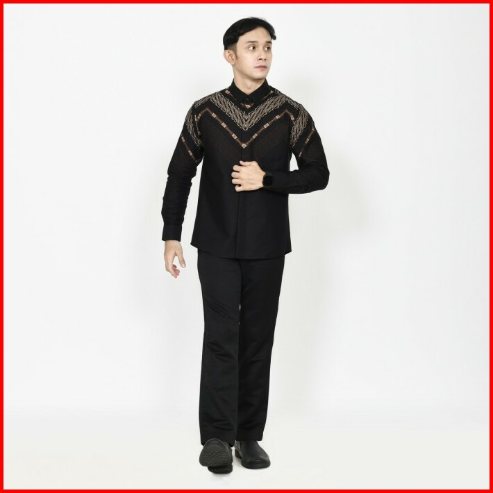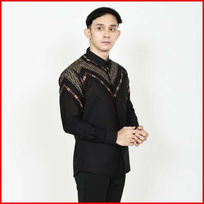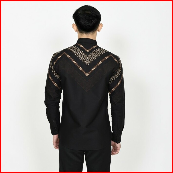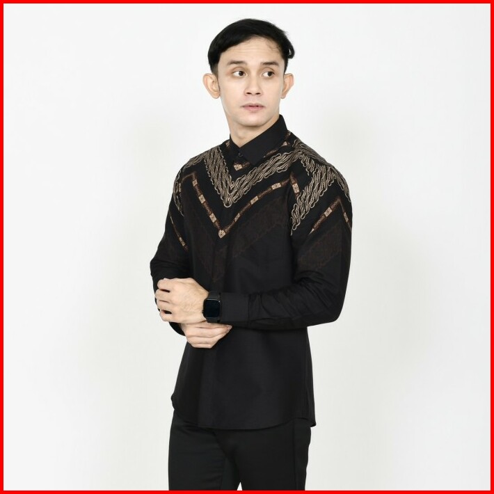 Kemeja Batik Pria Slimfit Baju Lengan Panjang Furing Premium Dark Grey 2654