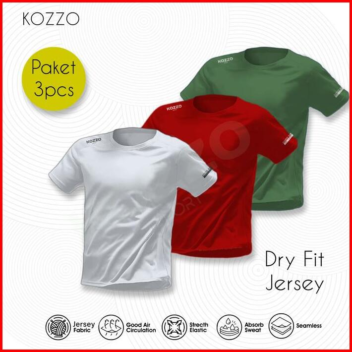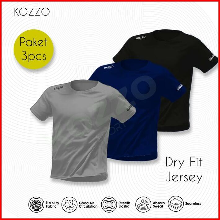 Paket 3 Pcs Kaos Baju Olahraga Pria T-shirt Lari Kozzo Dry Fit Breathable Quickdry Milano Sport Jersey Antiban