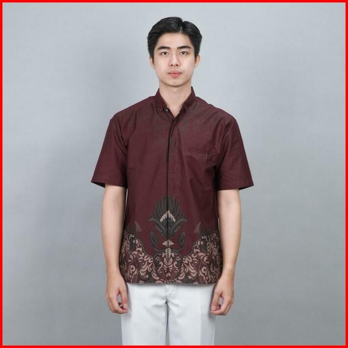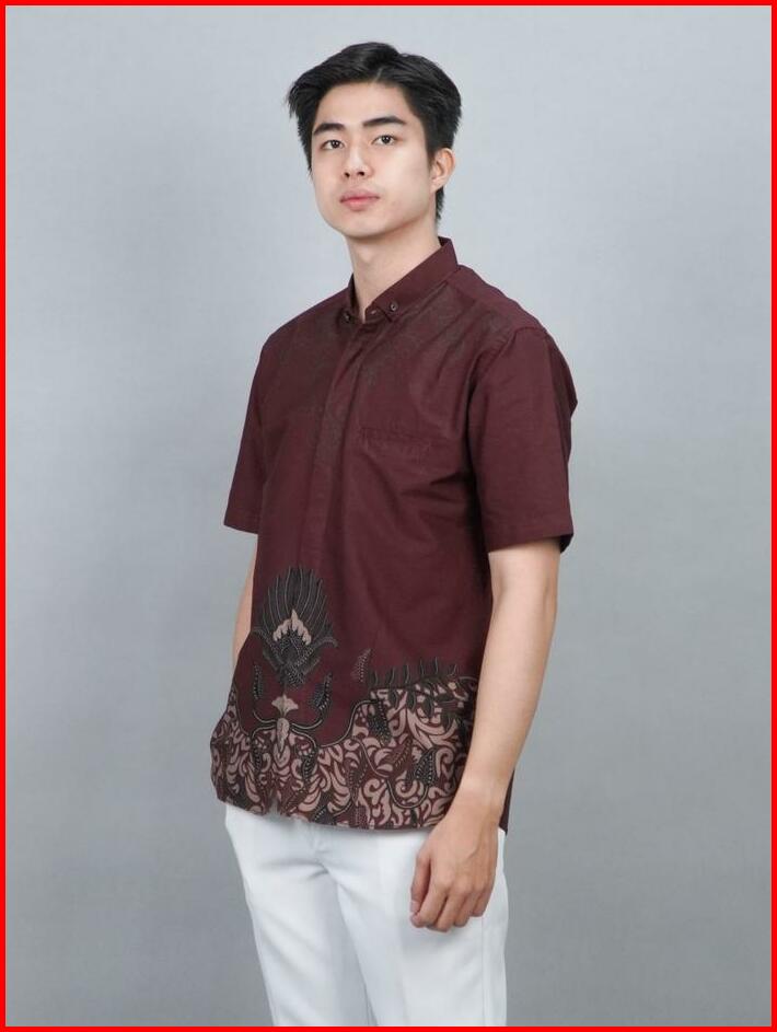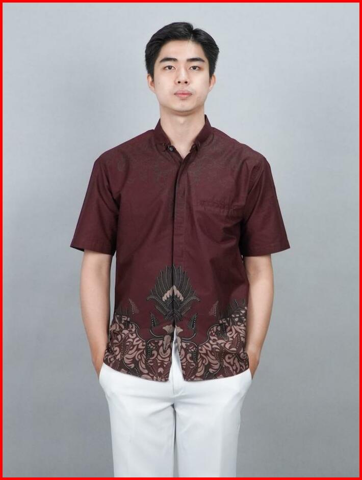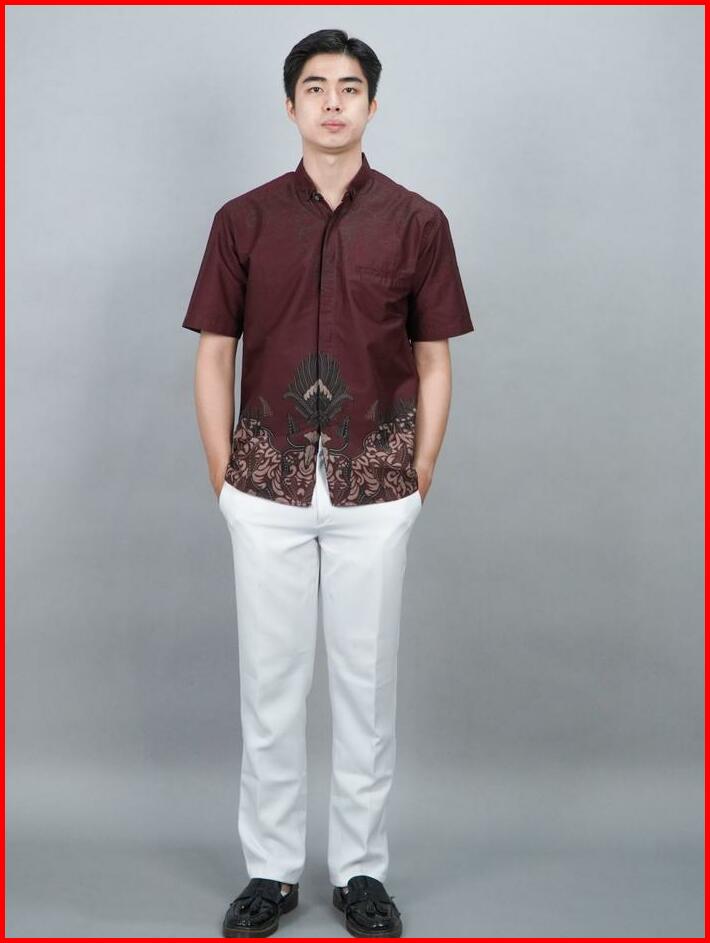 Swipe Up Kemeja Batik Pria Modern Katun Slimfit Lengan Pendek Motif Widura Maroon