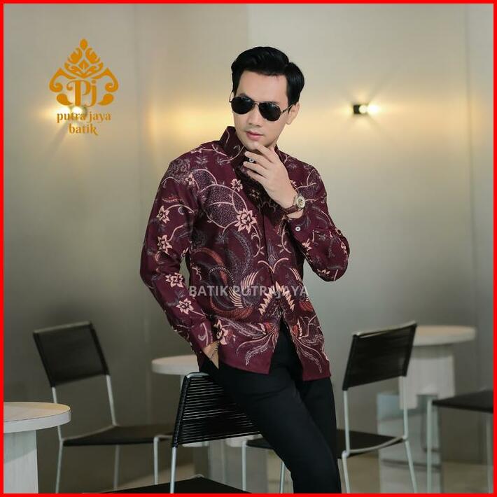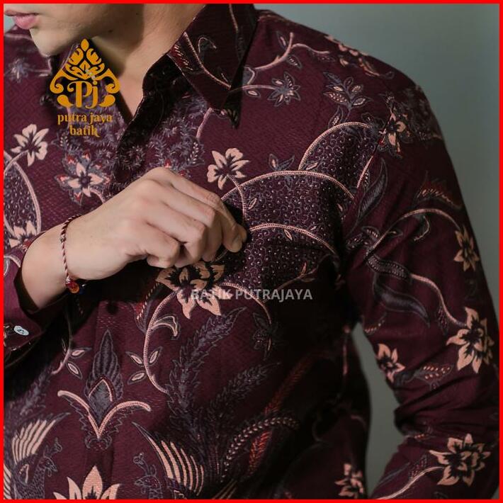 Pj.id Sultan Burgundy Kemeja Batik Pria Slimfit Lengan Panjang Katun Lapis Furing Elegan Untuk Kondangan Lamaran Kantor