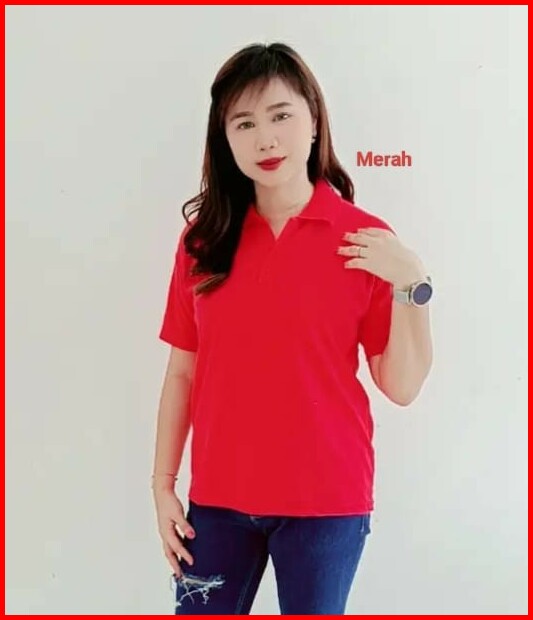 Kaos Kerah Wanita Merah Cabe Polo Polos Pendek Wanita Merah