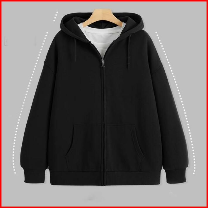 Hoodie Zipper Sleting Hoodie Bahan Fleece Lembut Bisa Untuk Cewe Cowo Unisex Fashion Sweater Oversize Basic Tebal Hitam