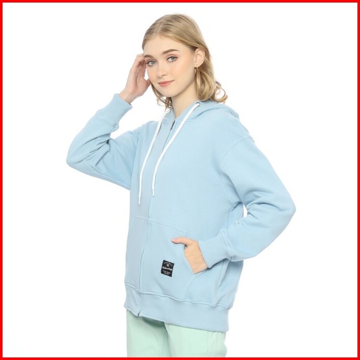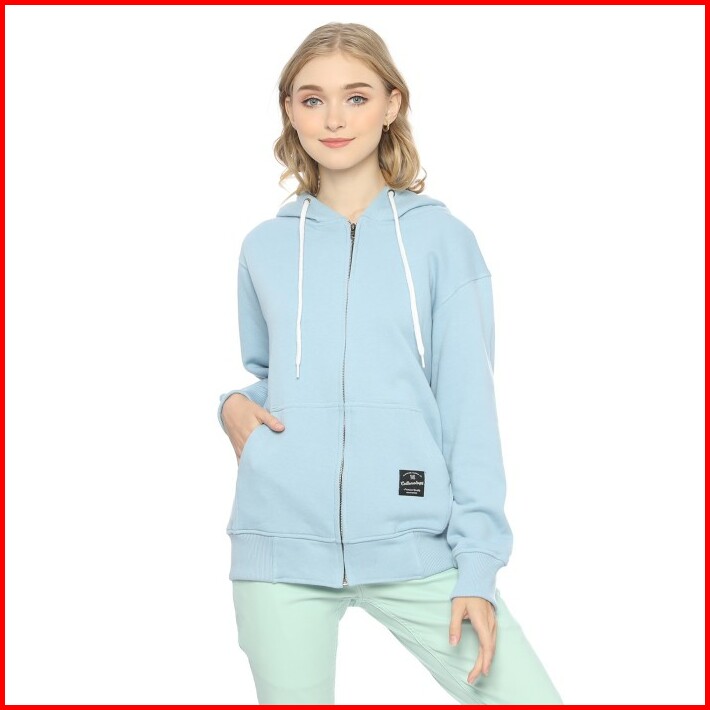 Cottonology Hoodie Wanita Zipper Biru Mint