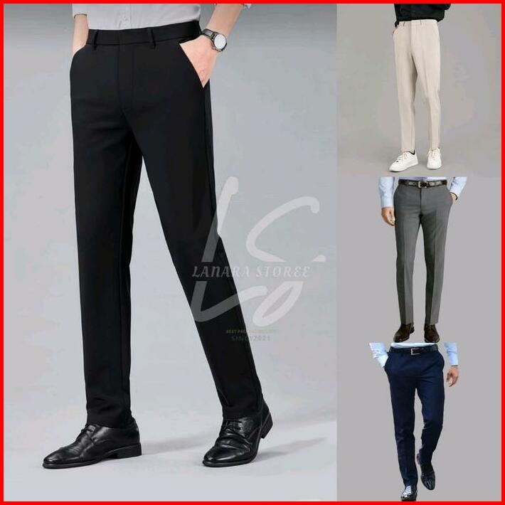Celana Slimfit Warna Limited Kantor Panjang Nyaman Putih Cream Mocca Hitam Abu Muda Tua Coklat Navy Kain Semi Woll Kerja