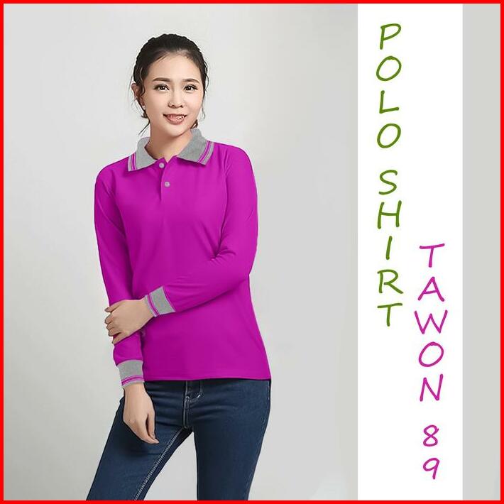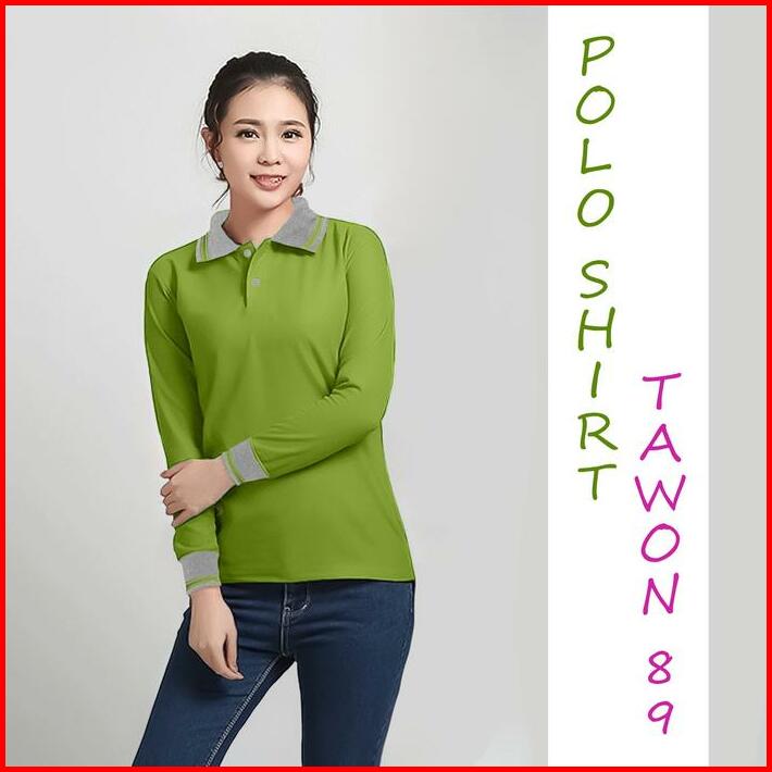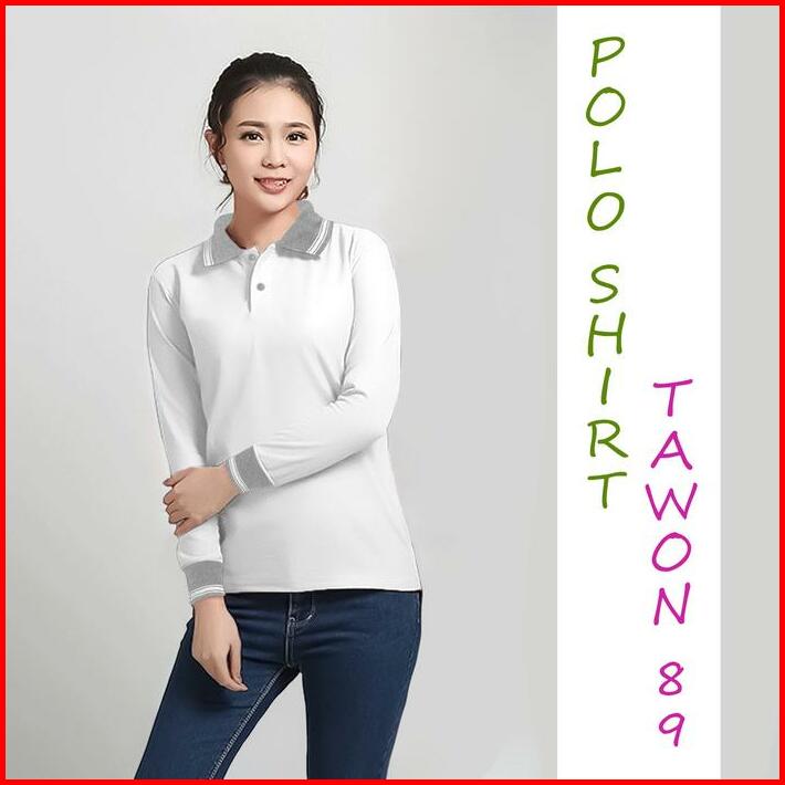 Tawon89 Kaos Polo Shirt Kerah Abu Misty Atasan Wanita Lengan Panjang Seragaman