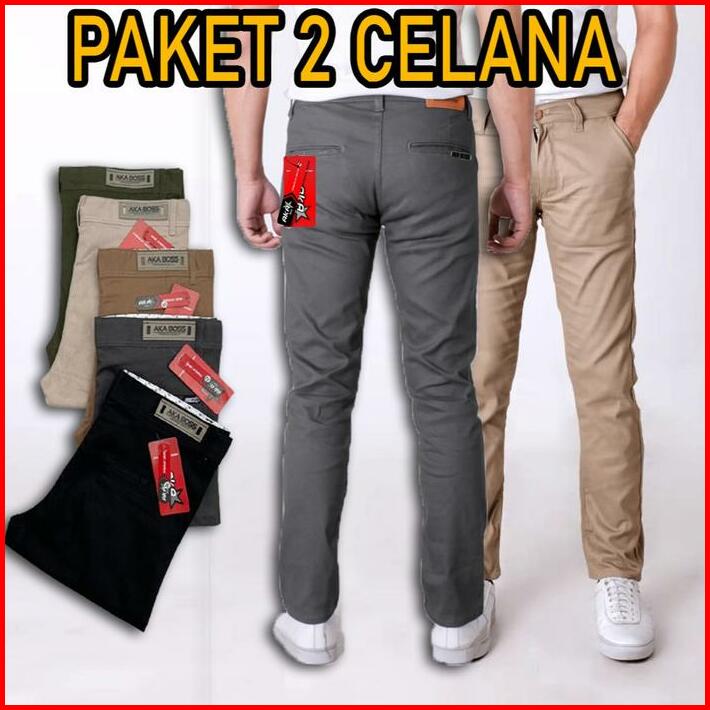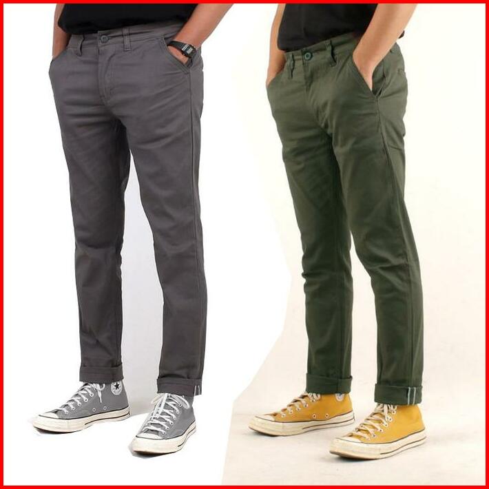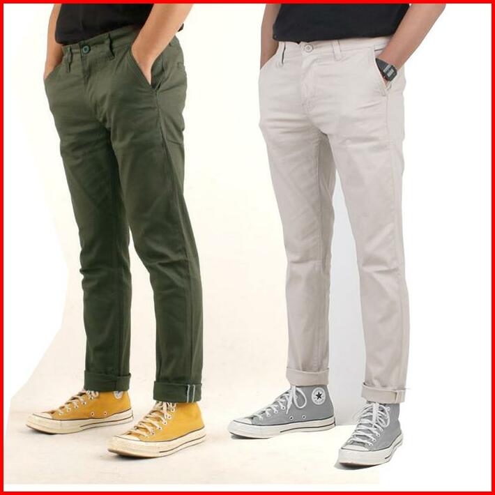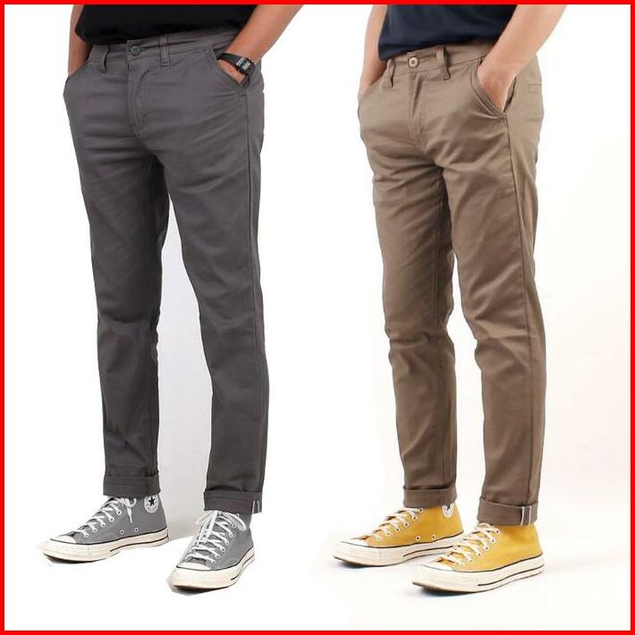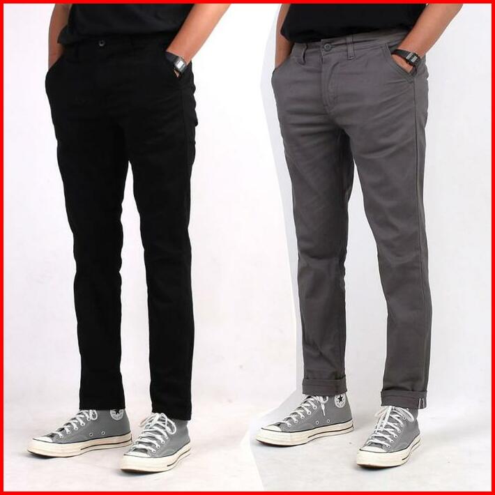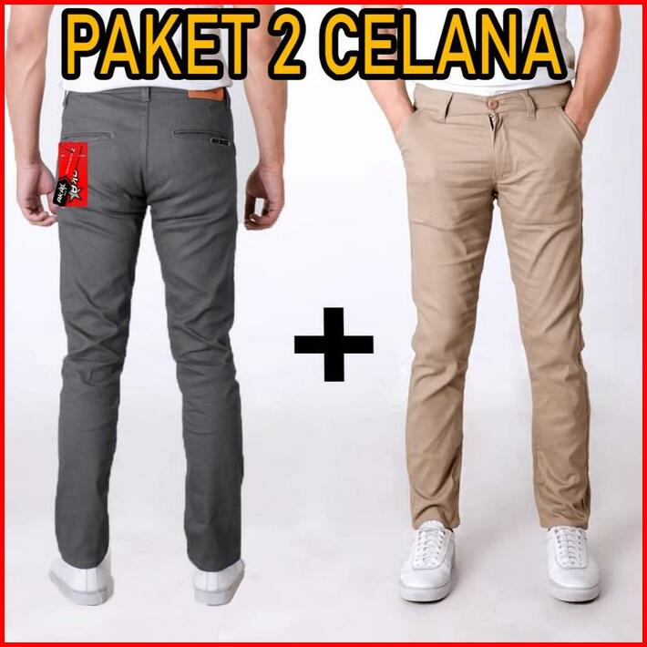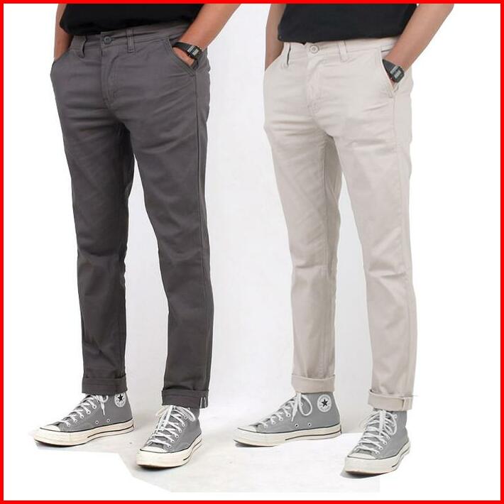 Paket Hemat 2pcs Chinos Panjang Slimfit Celana Pria Hitam Cream Grey Strecth Bahan Melar