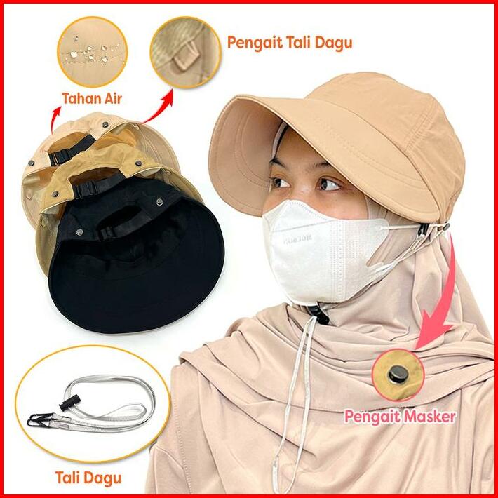 Yarra Topi Pantai Kait Masker Wanita Korea Anti Panas Matahari Bucket Hat Pengait Tali Dagu Gesper Karet Elastis Fashion