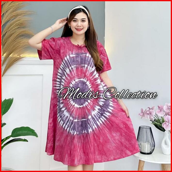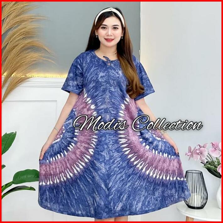 Daster Kaos Wanita Jumbo Lengan Pendek Baju Santai Tidur Dress Bumil Lingkar Dada 120 Cm Model Kerah Leher U Neck Dada K
