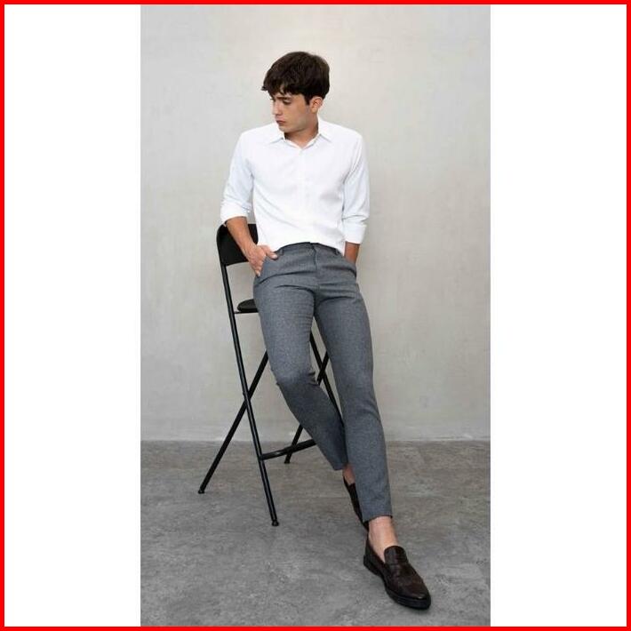 Celana Kantor Pria Slimfit Angkle Pants Celana Kerja Bahan Semi Woll Premium Abu Formal Kasual Pas