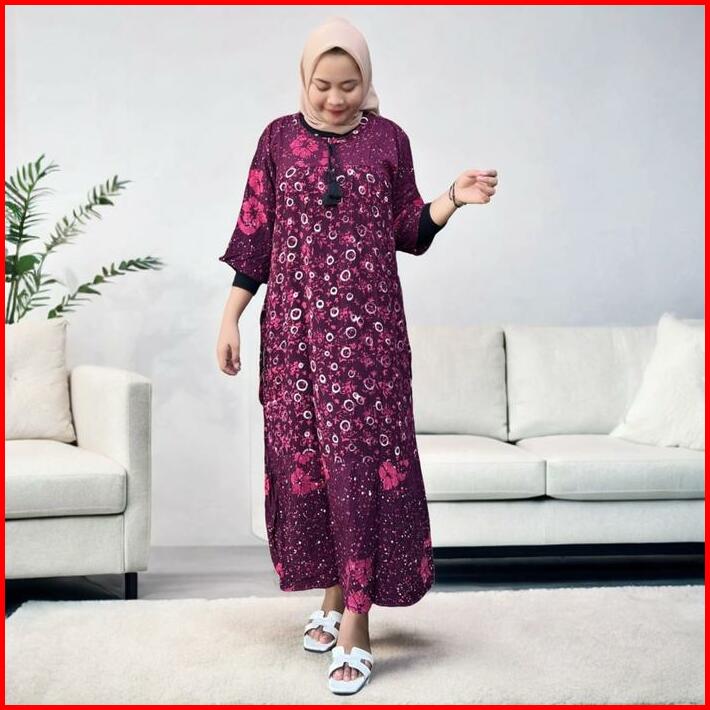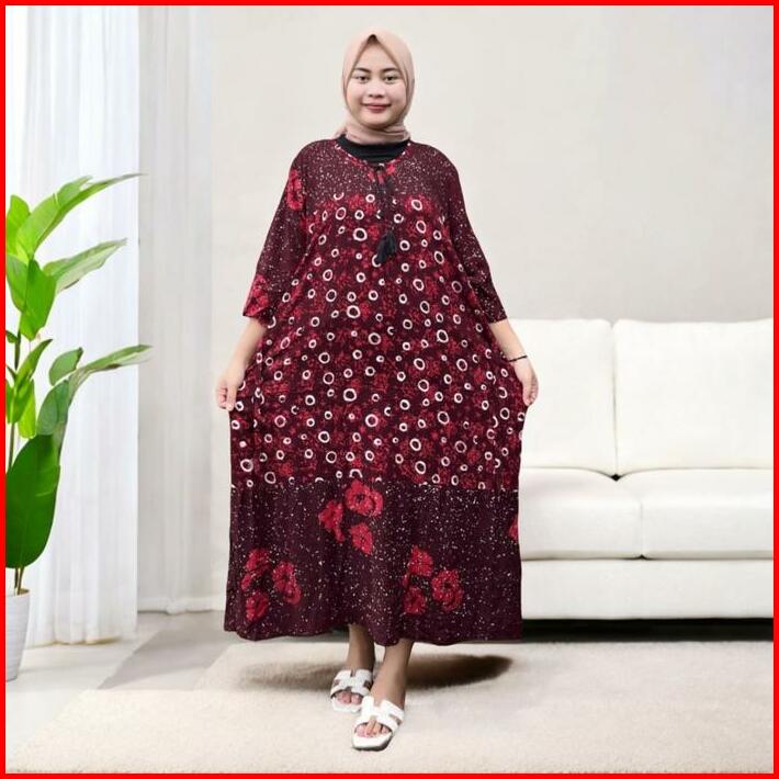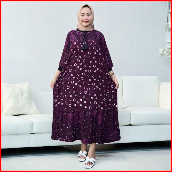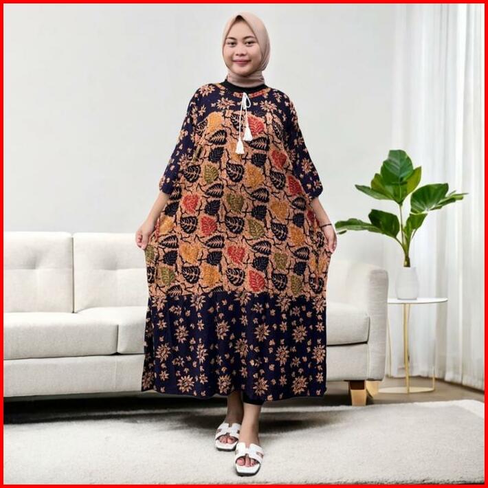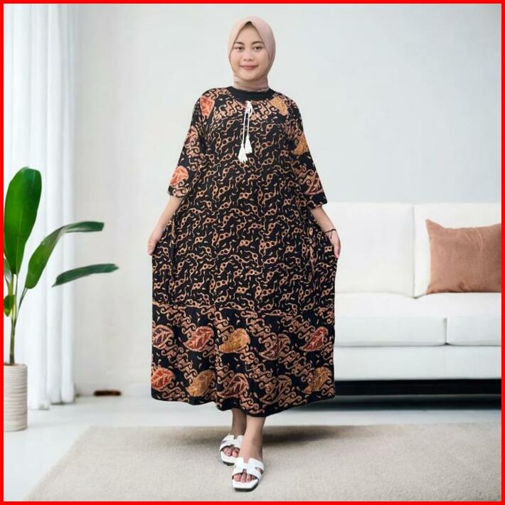 Daster Maura Jumbo Ld 140 Motif Batik Cap Pekalongan Bahan Rayon Premium Dress Busui Nyaman Panjang Bumil