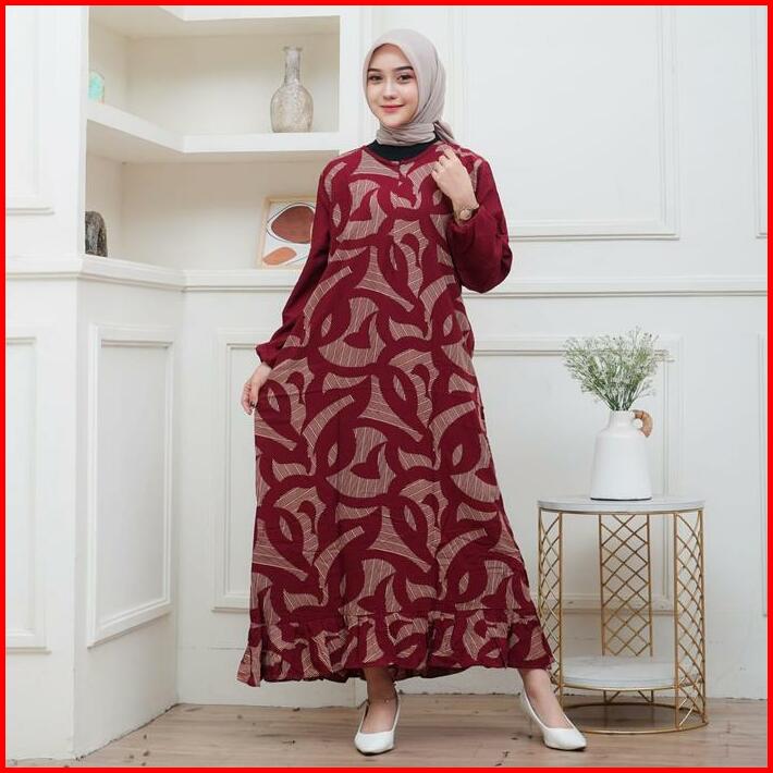 Palapa Dress Daster Kekinian Dress Rayon Rempel Busui Lengan Panjang Homedress Batik Cantik Motif