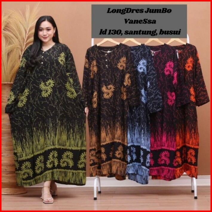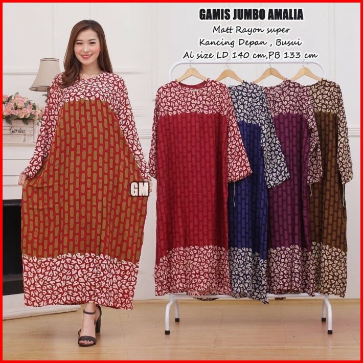 Daster Jumbo Big Size Lengan Panjang Ld 130 Rayon Batik Kancing Depan
