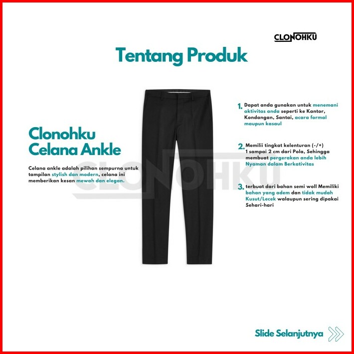 Celana Ankle Pants Pria Sirwal Slimfit Bahan Formal Pria