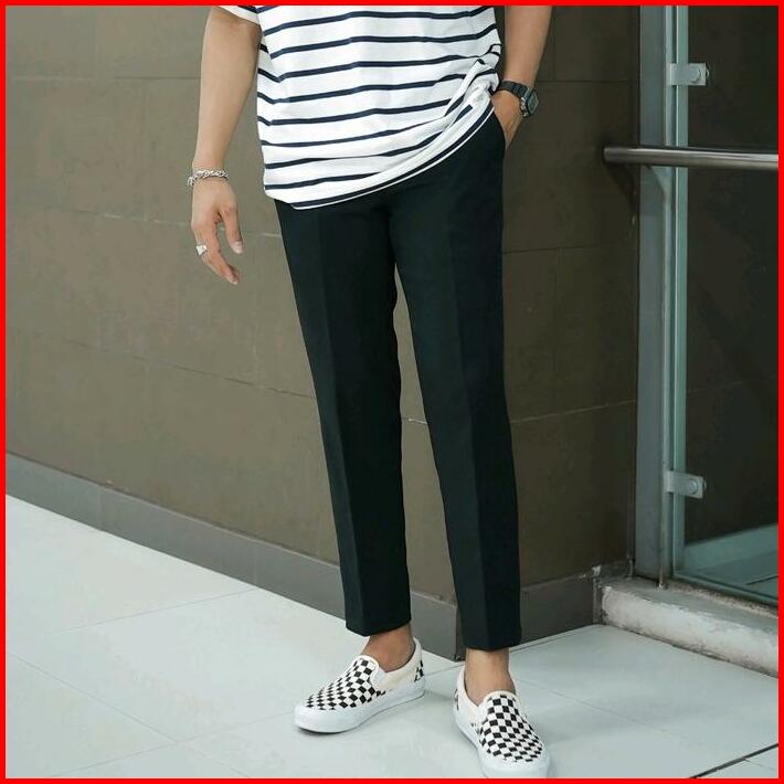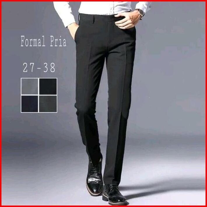 Celana Kantor Formal Kerja Bahan Pria Slimfit Premium Nyaman Panjang Lembut Hitam
