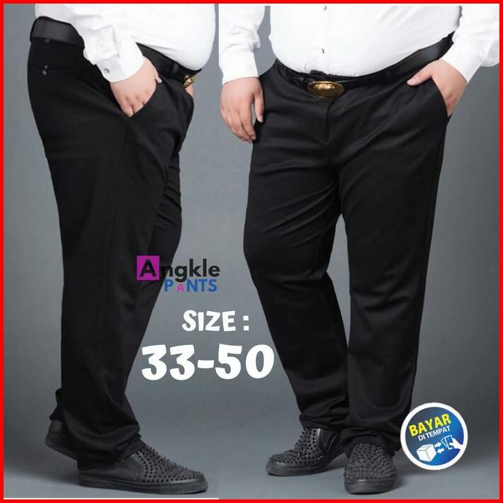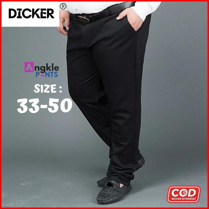 Celana Kantor Jumbo Pria Big Size Formal Bahan Twist Premium Merk Dicker Kantong Panjang Kerja Dewasa Kain Hitam Fit Kot