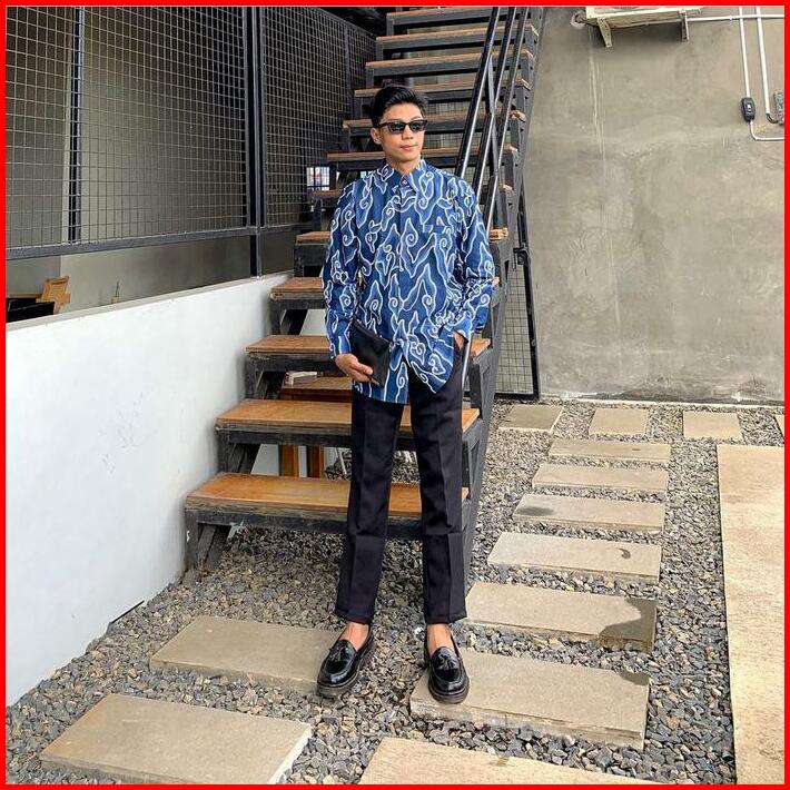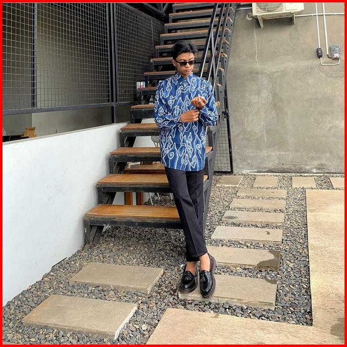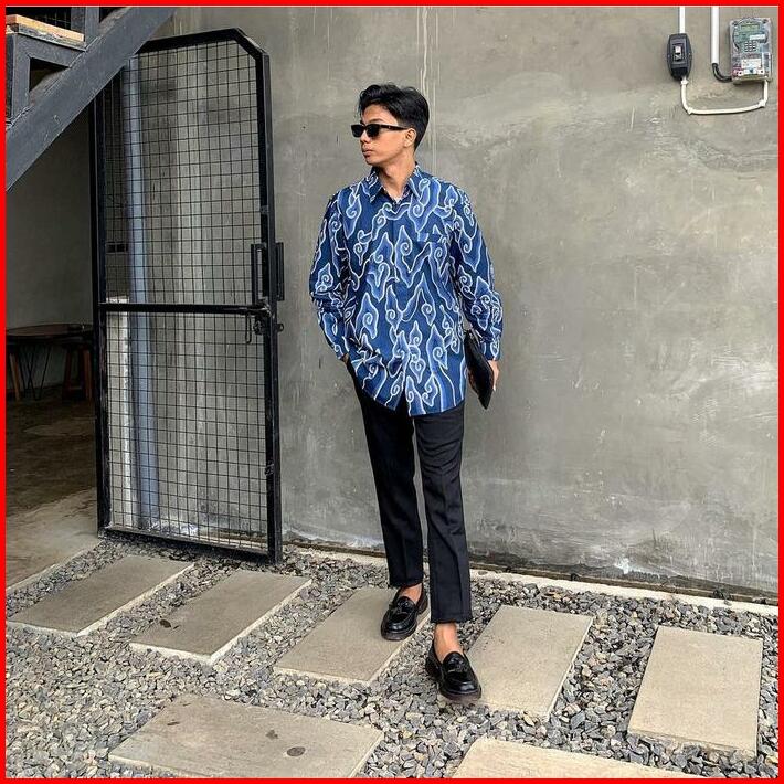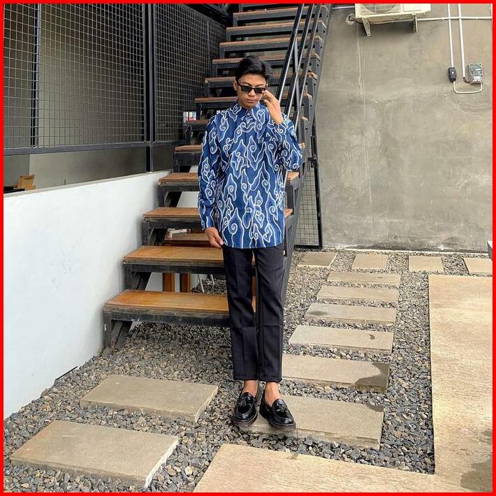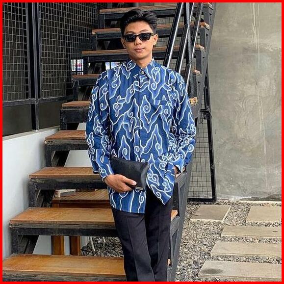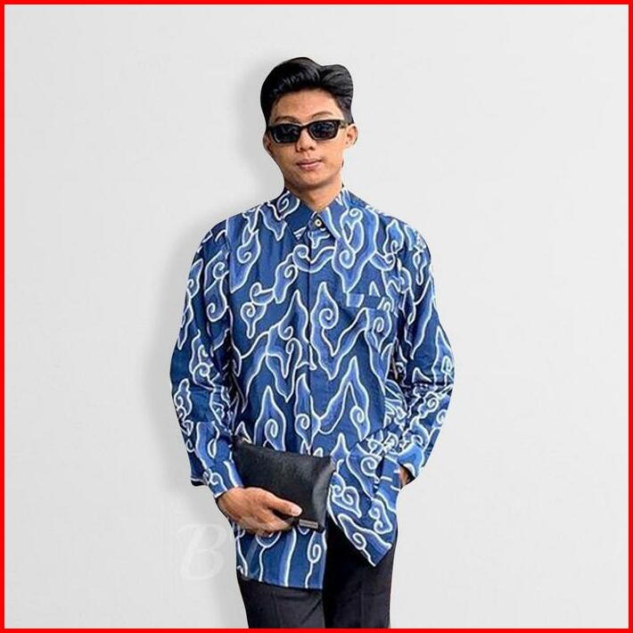 Batik Trusmi Kemeja Pria Lengan Panjang Batik Pria Jumbo Motif Mega Mendung Birawa Premium Baju Katun Slimfit Coklat