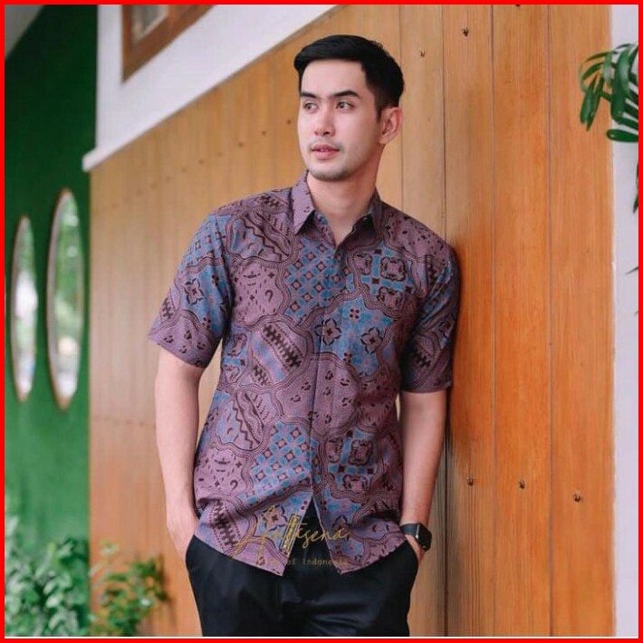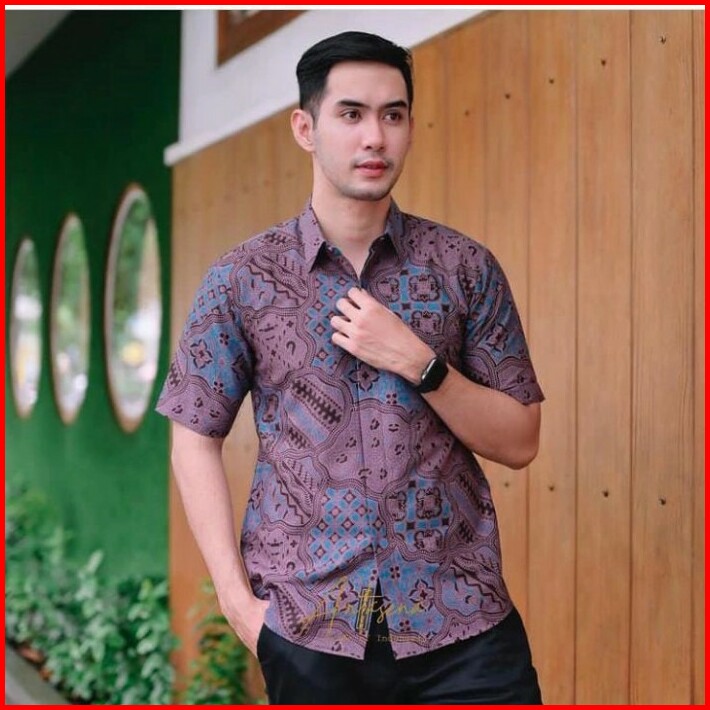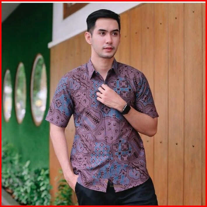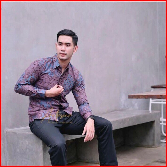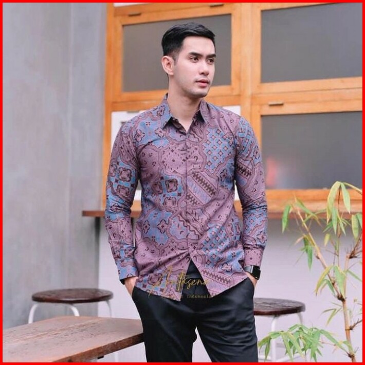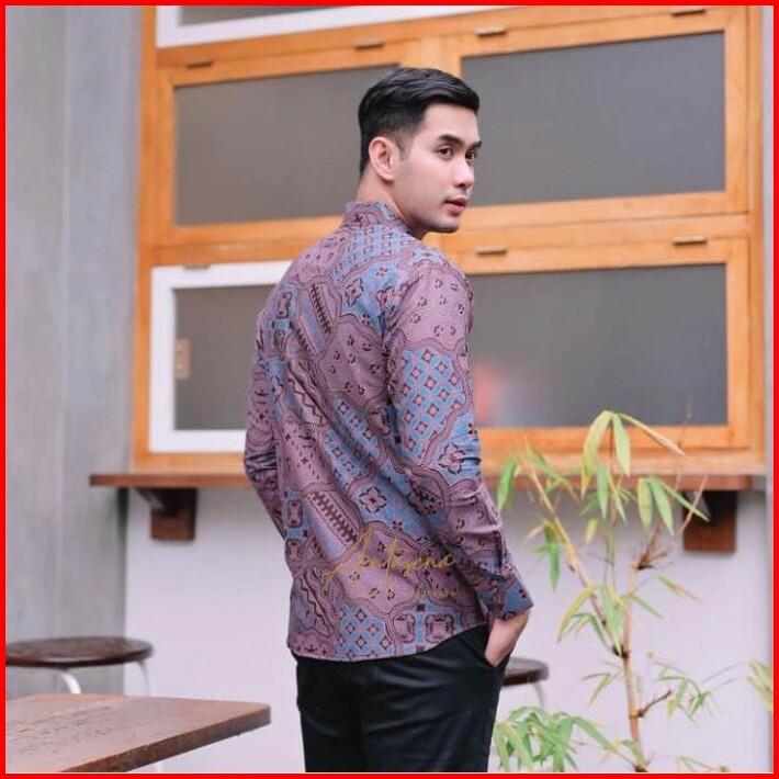 Kemeja Batik Pria Ori Ungu Lengan Panjang Slimfit Premium Terlaris