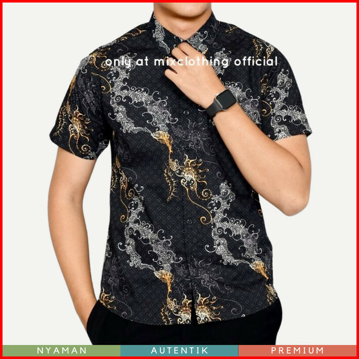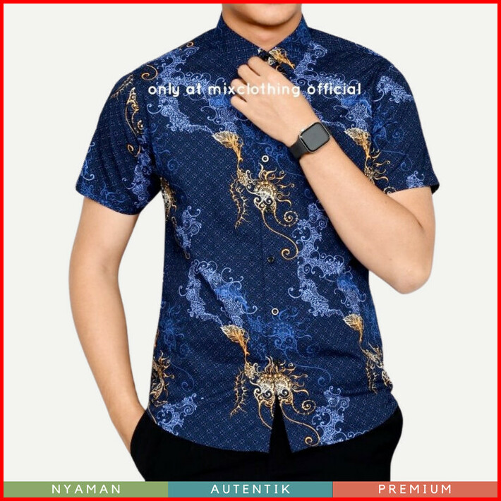 Kemeja Pria Slim Fit D444 Unik Mewah Baju Batik Pria Slimfit