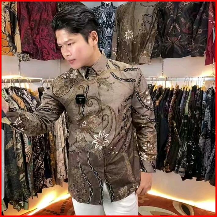 Kemeja Batik Slimfit Coklat Tanahan Lengan Panjang Bahan Katun Halus Lapis Furing Lembut Nyaman Pria Motif