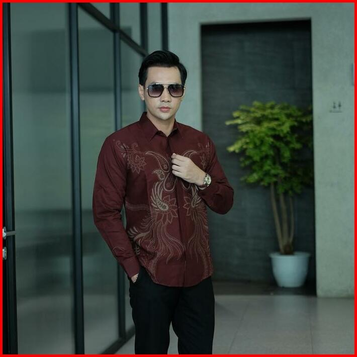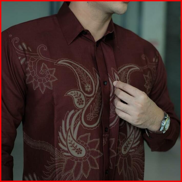 Batik Ningratan Motif Astaguna Maroon Kemeja Batik Pria Premium Lengan Panjang Slimfit Lapis Furing Katun Prima Halus Da