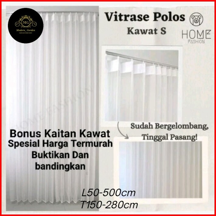 Vitrase Foil Polos Import Plisket Putih Daleman Gorden Tirai Lembut