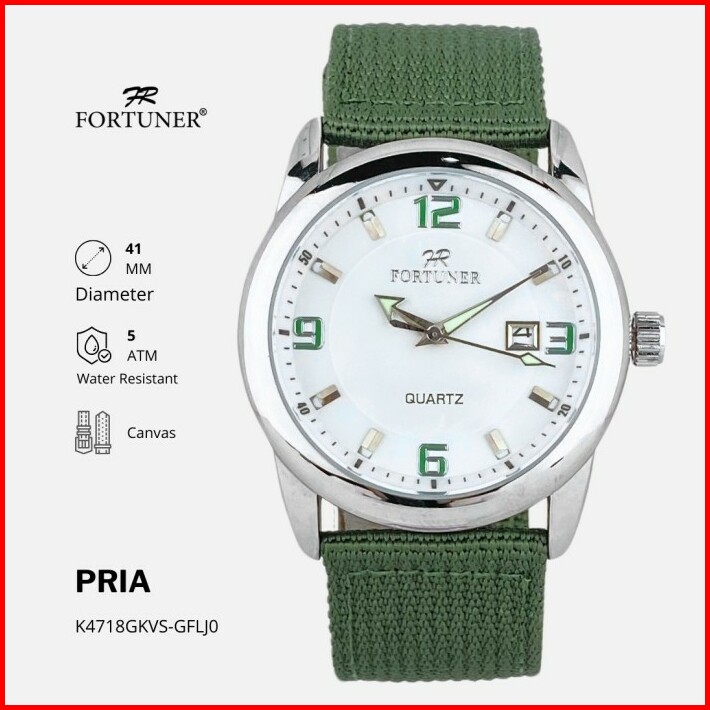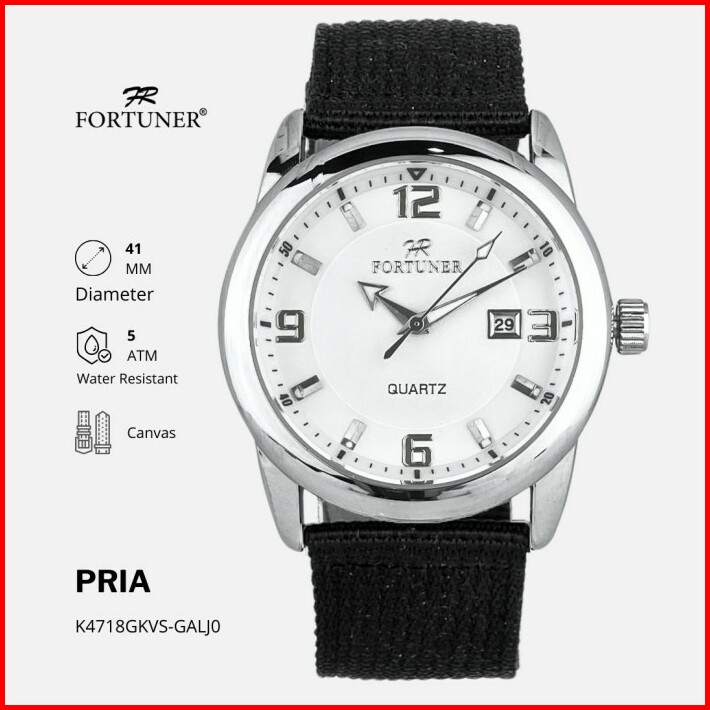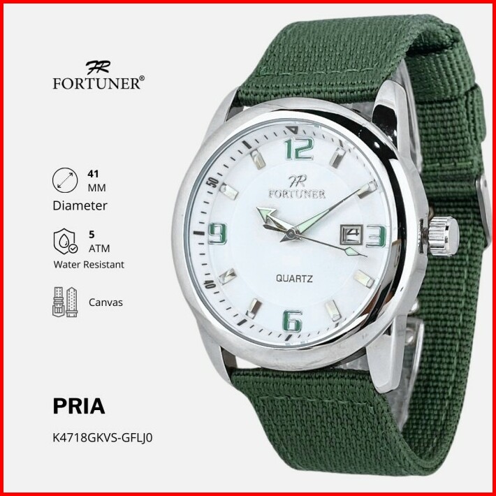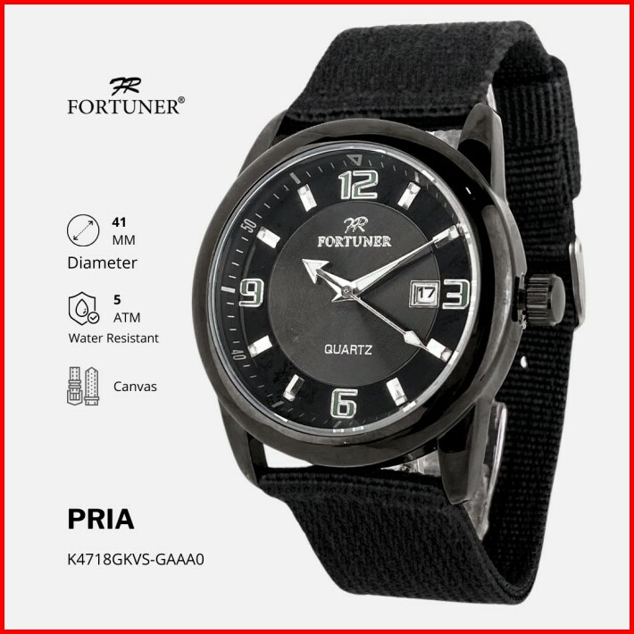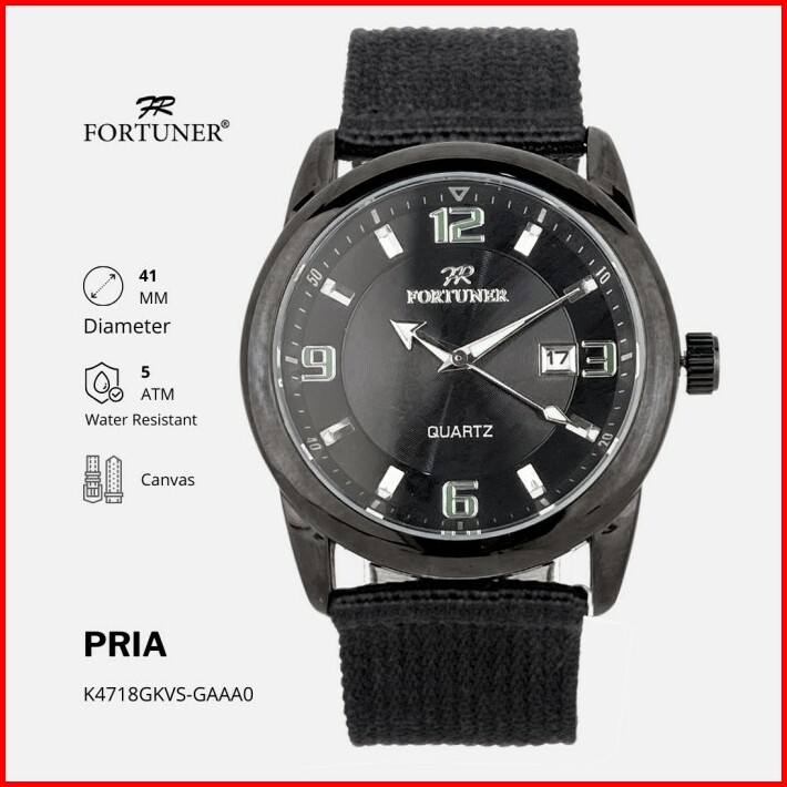 Fortuner Jam Tangan Pria Kasual Analog Quartz Tahan Air Kanvas Asen