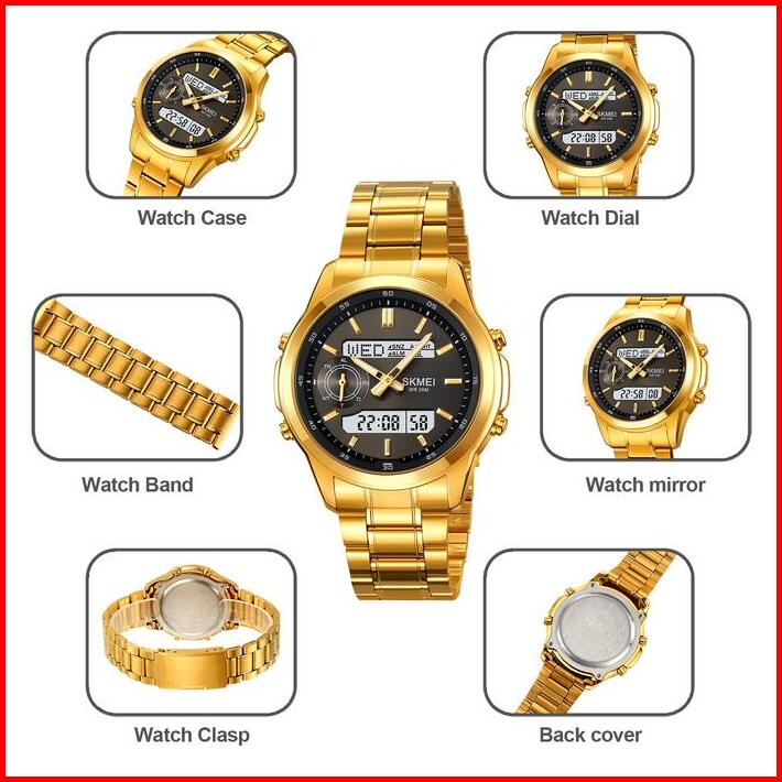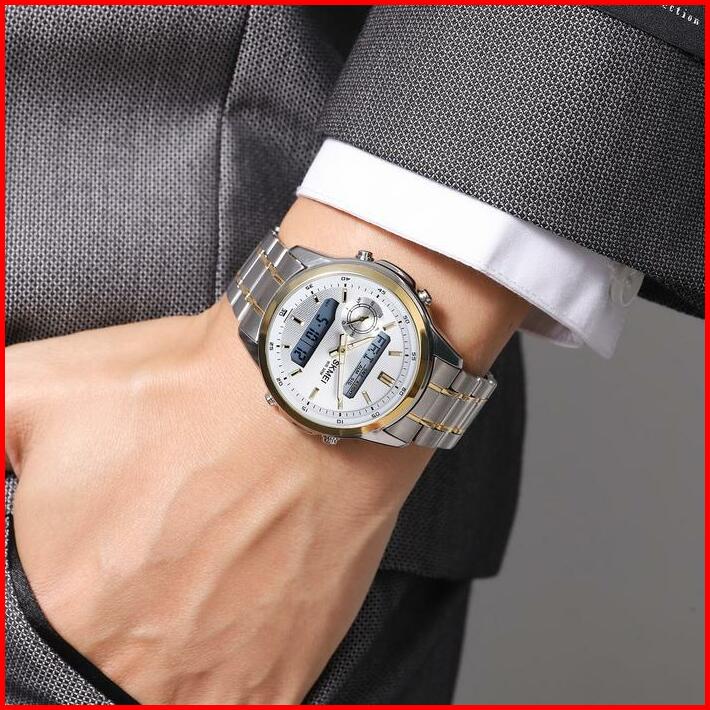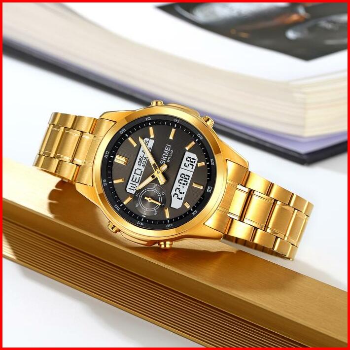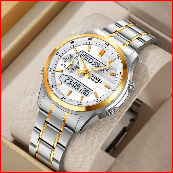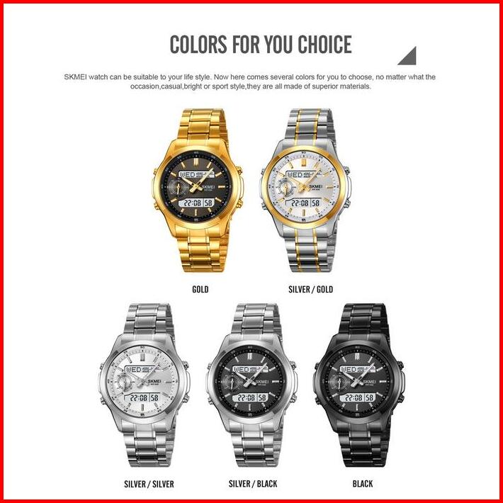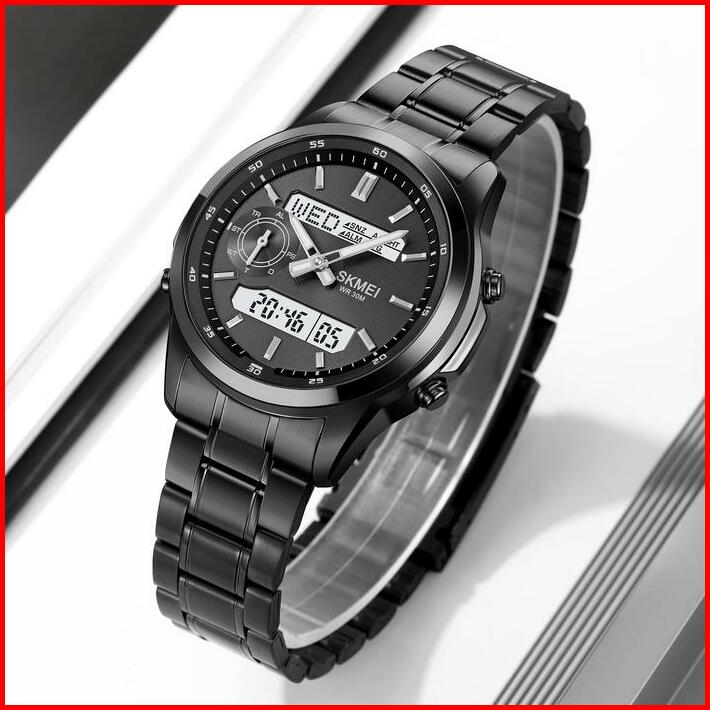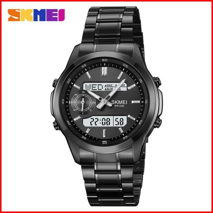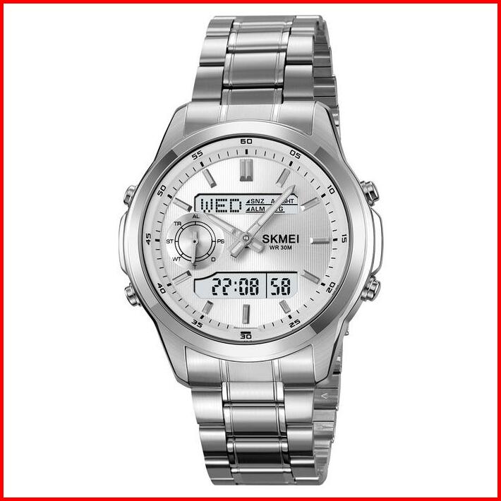Jam Tangan Pria Analog-digital Stainless World Time Dual Time Tahan Air Skmei 2284