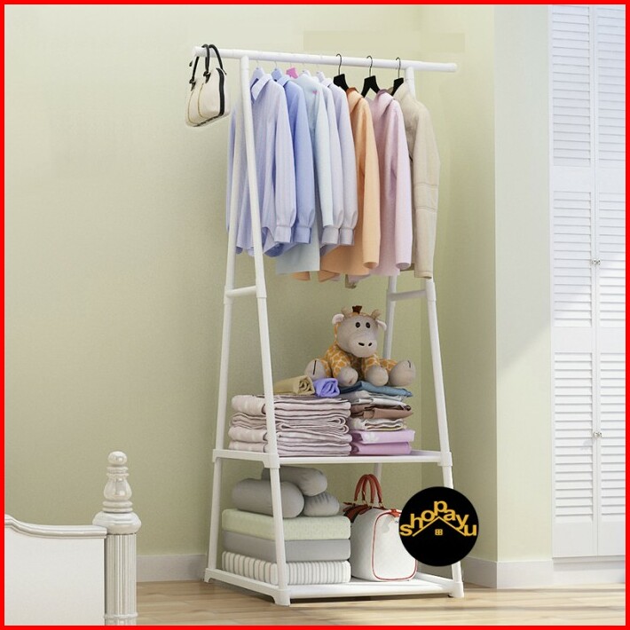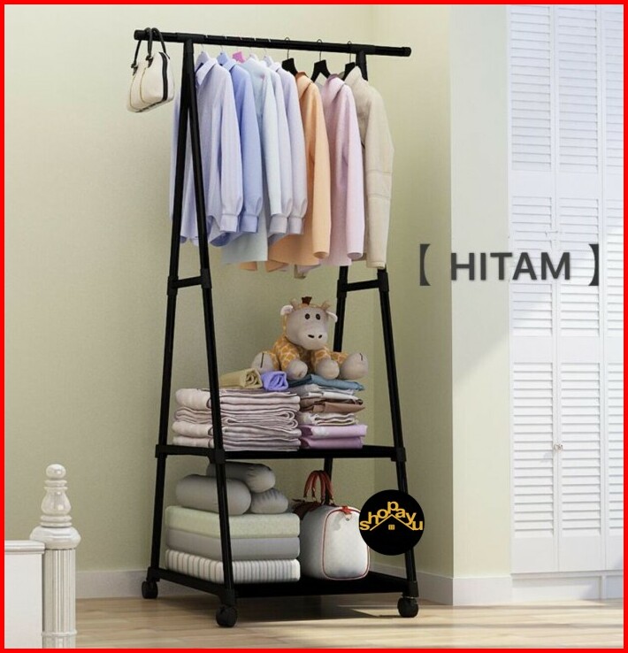 Triangle Stand Hanger Baju Rak Buku Pakain Rak Serbaguna Dengan 4 Roda